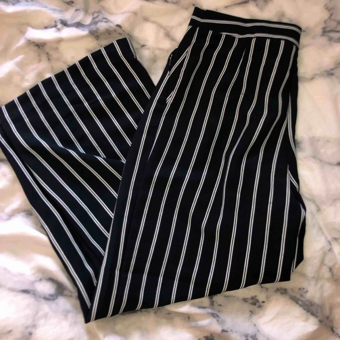Randiga byxor köpta på bikbok.dk, använda en gång, inga fel eller sömmar som är slitna. Är i kostymaktigt material.