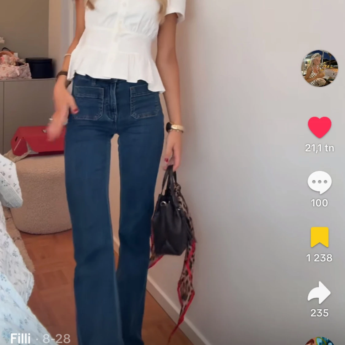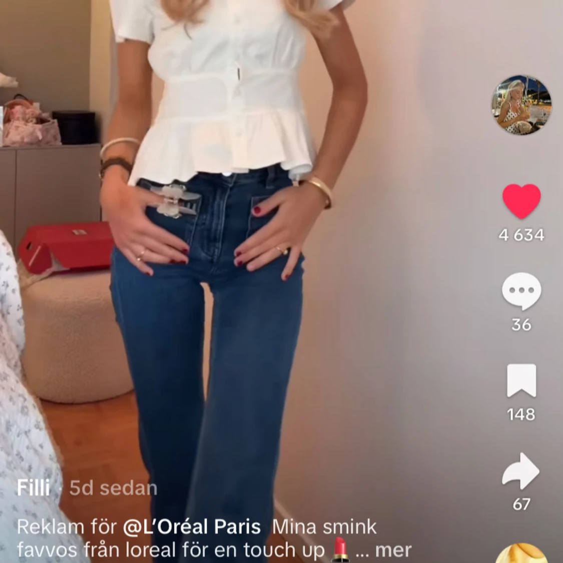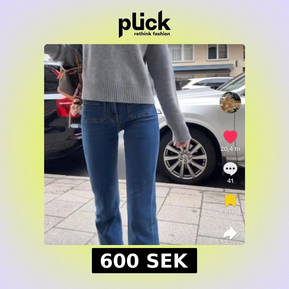Snygga blå jeans med bootcut-modell och höga fickor framtill. Byxorna har hög midja och raka ben med lätt utsvängning nertill. Klassisk jeanslook med markerade sömmar och en cool, tidlös vibe. Perfekta för dig som gillar en trendig men avslappnad stil.