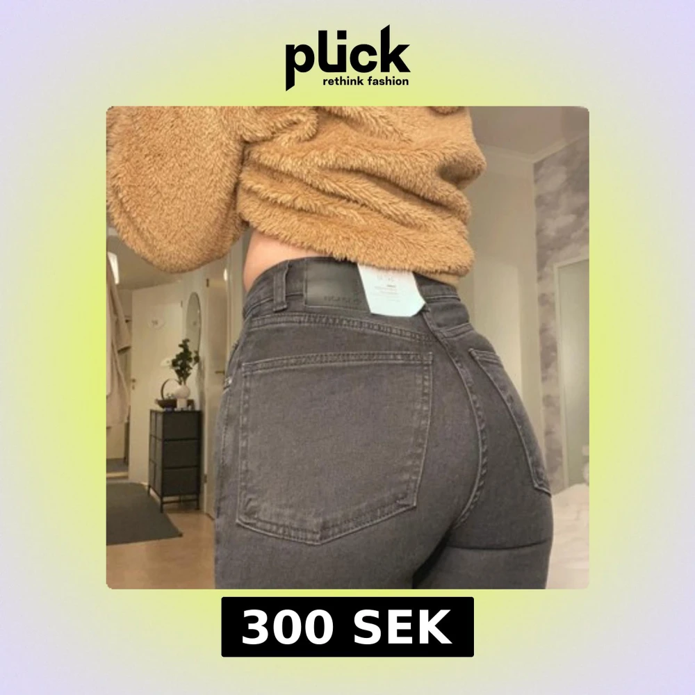 Snygga svarta jeans med hög midja och straight leg. Jeansen har en slim passform och raka ben, tillverkade i mjukt jeansmaterial med knapp och dragkedja framtill. Helt oanvända och köpta för 699kr