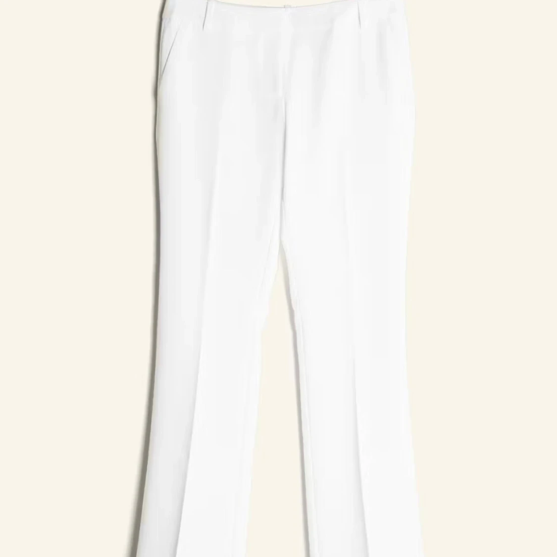 Jättesnygga vita kostymbyxor från BikBok. Byxorna är i storlek PETITE 34. De är upplaga så de passar mig som är 150cm vilket är perfekt för oss korta tjejer! Skriv om ni har frågor💕