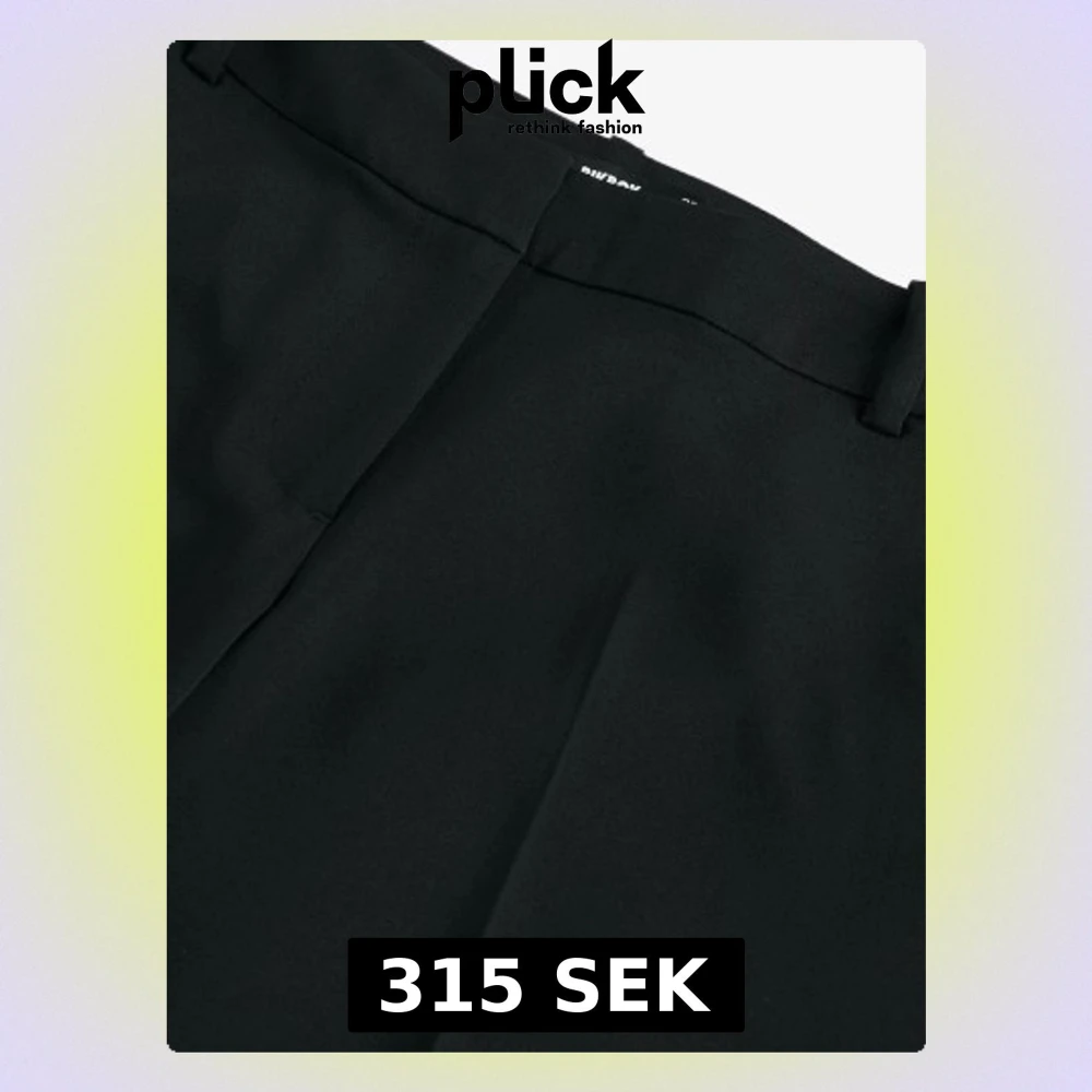 Stilrena svarta kostymbyxor. Byxorna har bälteshällor och klassisk stängning fram. Perfekta för en clean och dressad look. Materialet känns mjukt och har ett snyggt fall. Nypris 499kr