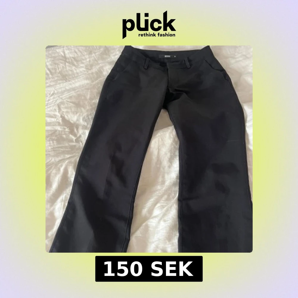Snygga lågmidjade svarta kostymbyxor från Bik Bok med en klassisk design med slits nere. Byxorna har en rak passform och är perfekta för en stilren look. De har hällor för bälte och en diskret dragkedja framtill.