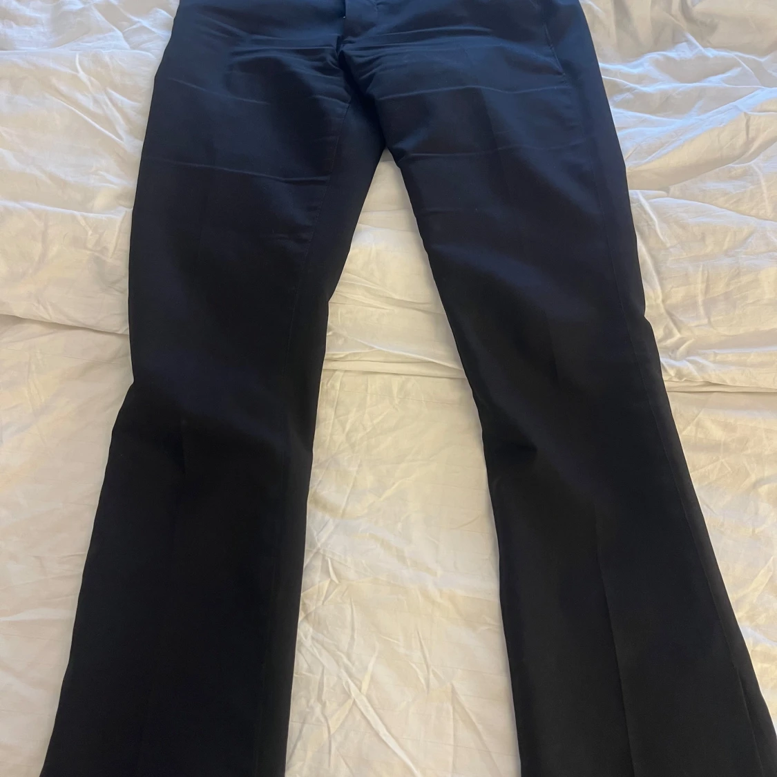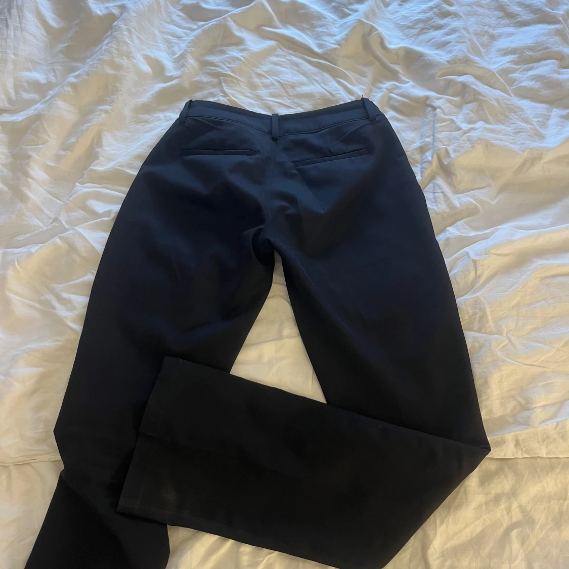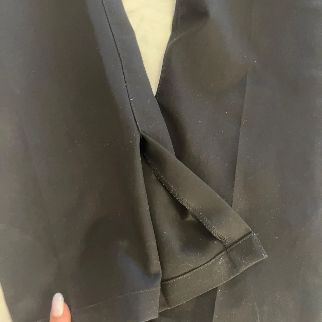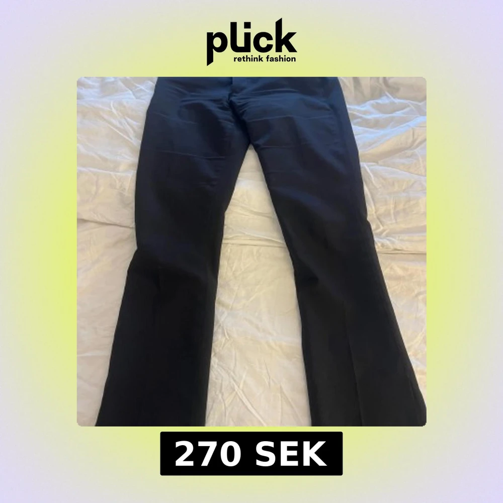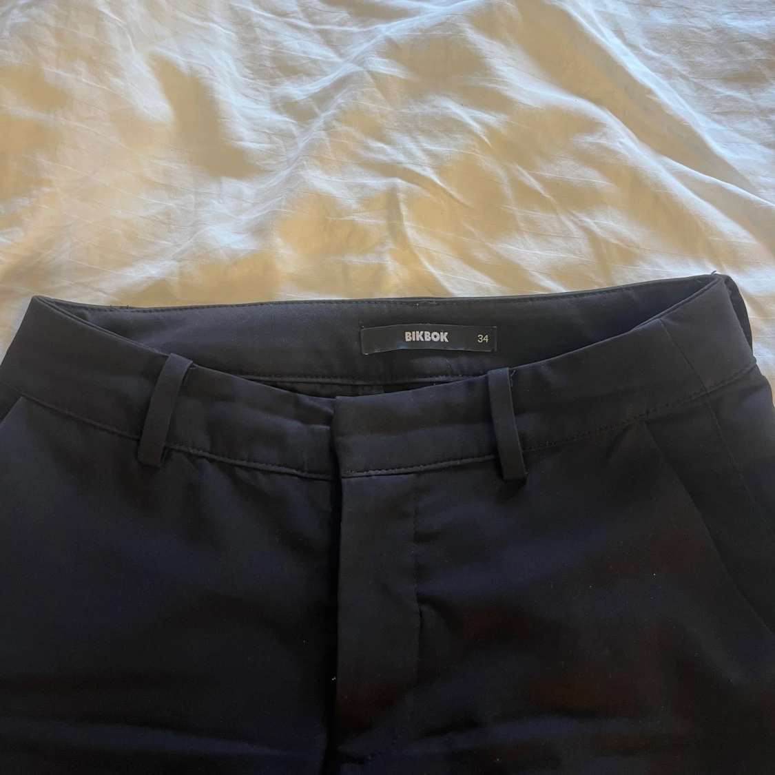 Klassiska svarta kostymbyxor från Bik Bok med normal passform och raka ben. Byxorna har hällor för bälte och stängs med dragkedja och knapp. Perfekta till en stilren look. Lågmidjade med en slits längst ner💕