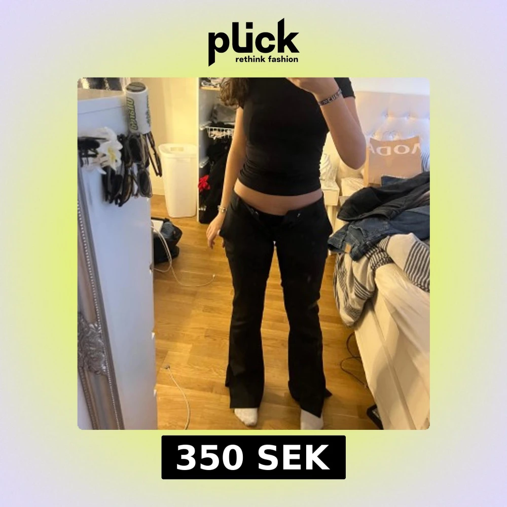 Snygga svarta kostymbyxor med en klassisk straight passform. De har en midwaist design och är perfekta för en stilren look. Byxorna har diskreta fickor och en dragkedja framtill.