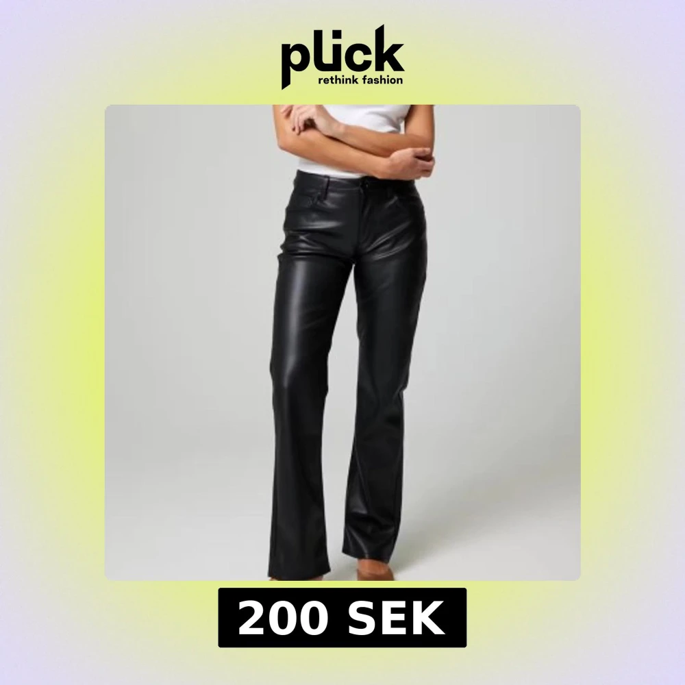 Snygga svarta skinnbyxor med låg midja och bootcut-stil. Perfekta för en trendig look. Byxorna har en klassisk design med dragkedja och knapp framtill.