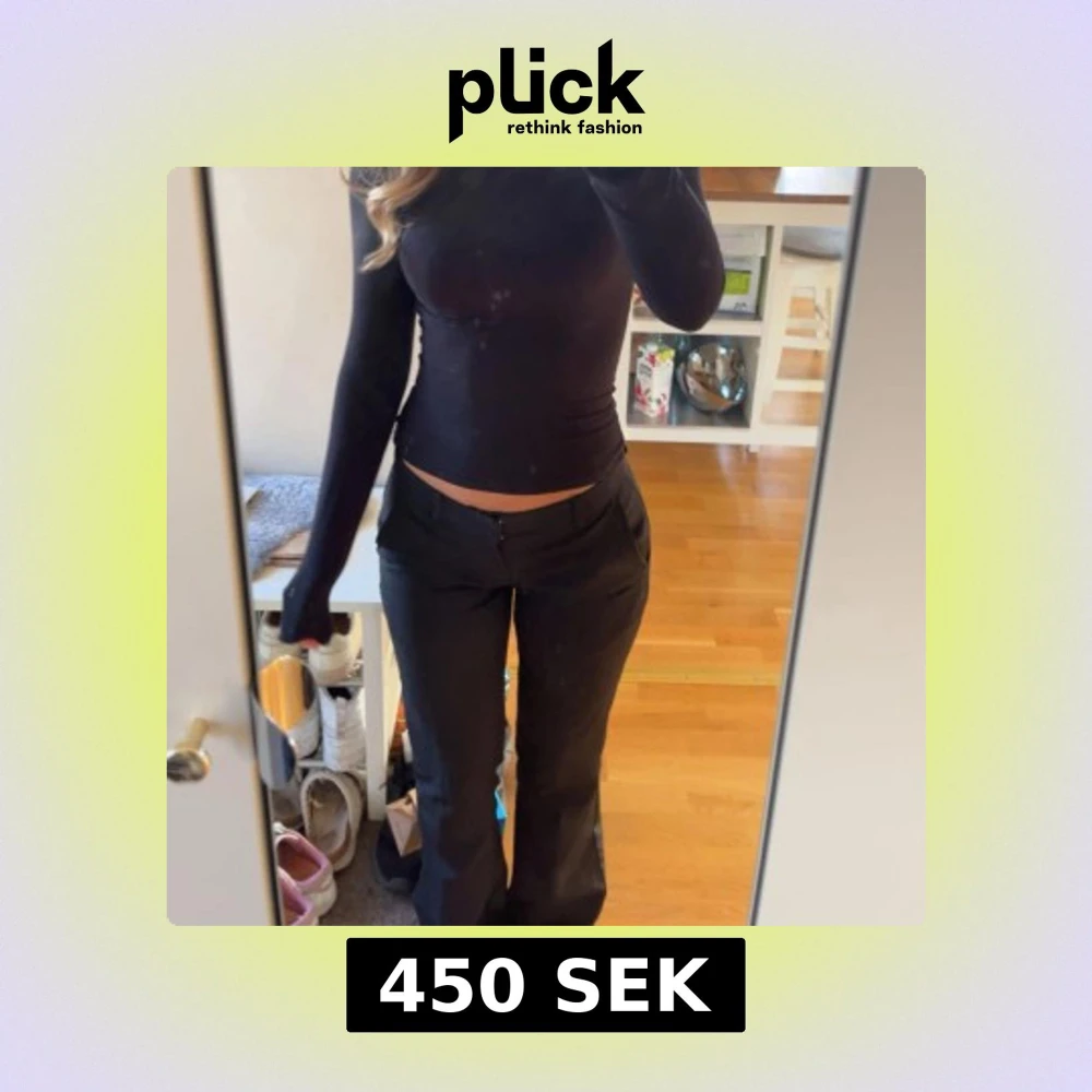Snygga svarta kostymbyxor med bootcut-snitt och låg midja. Byxorna har klassisk passform och är perfekta för en stilren look. Tillverkade i ett mjukt och bekvämt tyg som ger en dressad känsla.