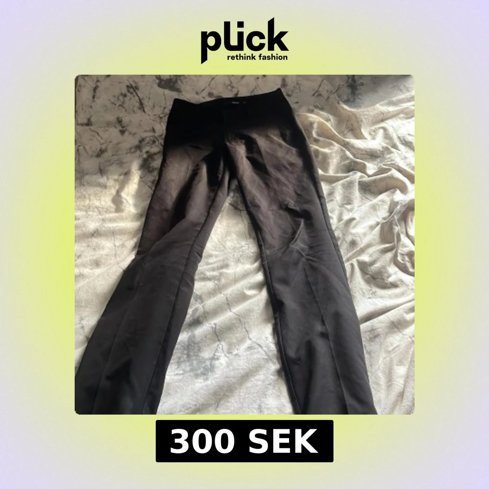 Säljer ett par svarta kostymbyxor från BikBok i storlek 34. Byxorna är bootcut och har två bakfickor som design. Använda ett fårtal gånger men är fortfarande bra. Säljer för de är för små i storleken.