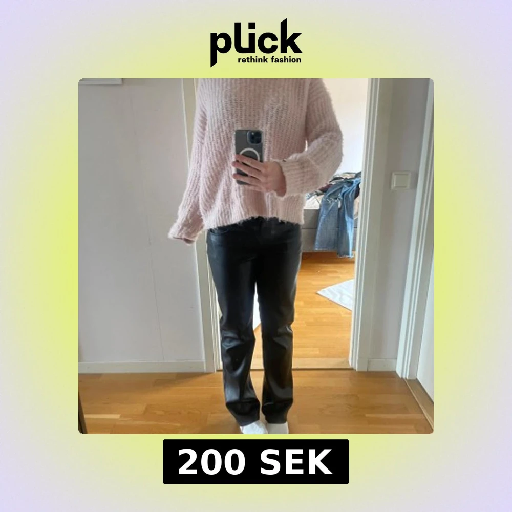 Snygga svarta byxor i skinnimitation med rak passform och klassisk femficksdesign. Byxorna har normal midja och stängs med dragkedja och knapp. Perfekta för dig som vill ha en edgy och stilren look.