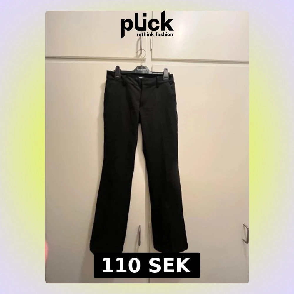 Säljer ett par svarta Vera flare kostymbyxor från BikBok i storlek 36. Byxorna har låg midja och bootcut! Passar mig som är 165cm lång!