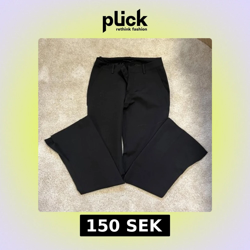 Snygga svarta kostymbyxor från BikBok i storlek 36. Byxorna har bootcut-modell med vida ben och klassisk midja. Det är en slits också.