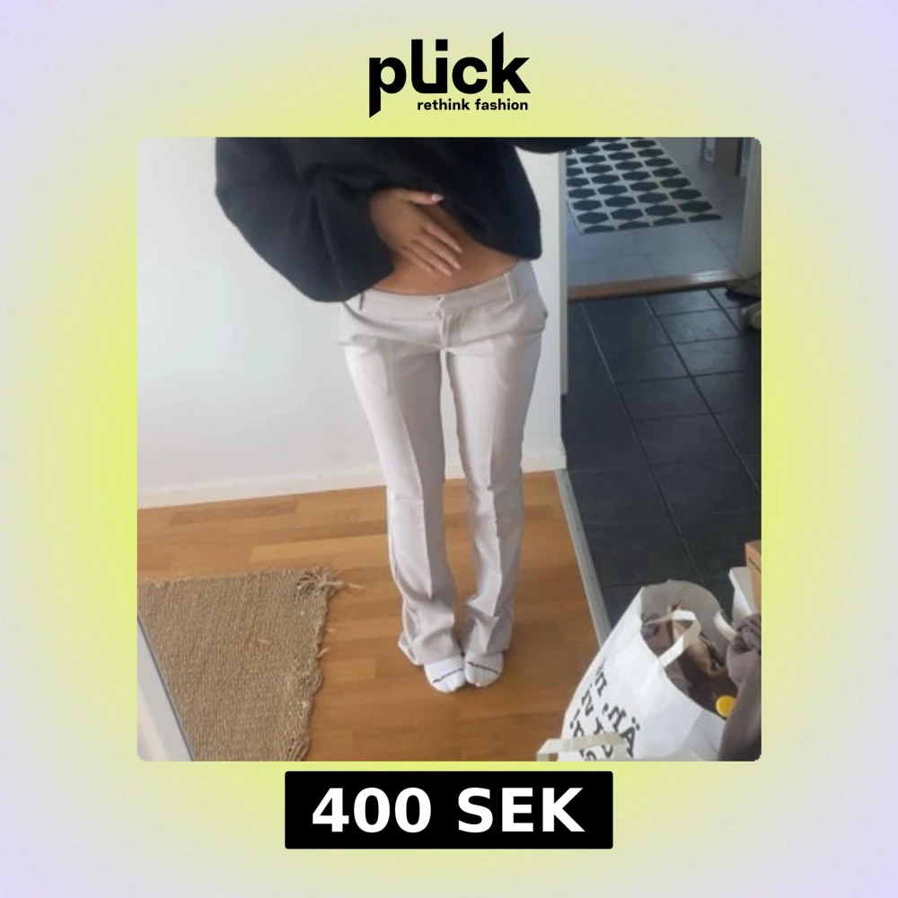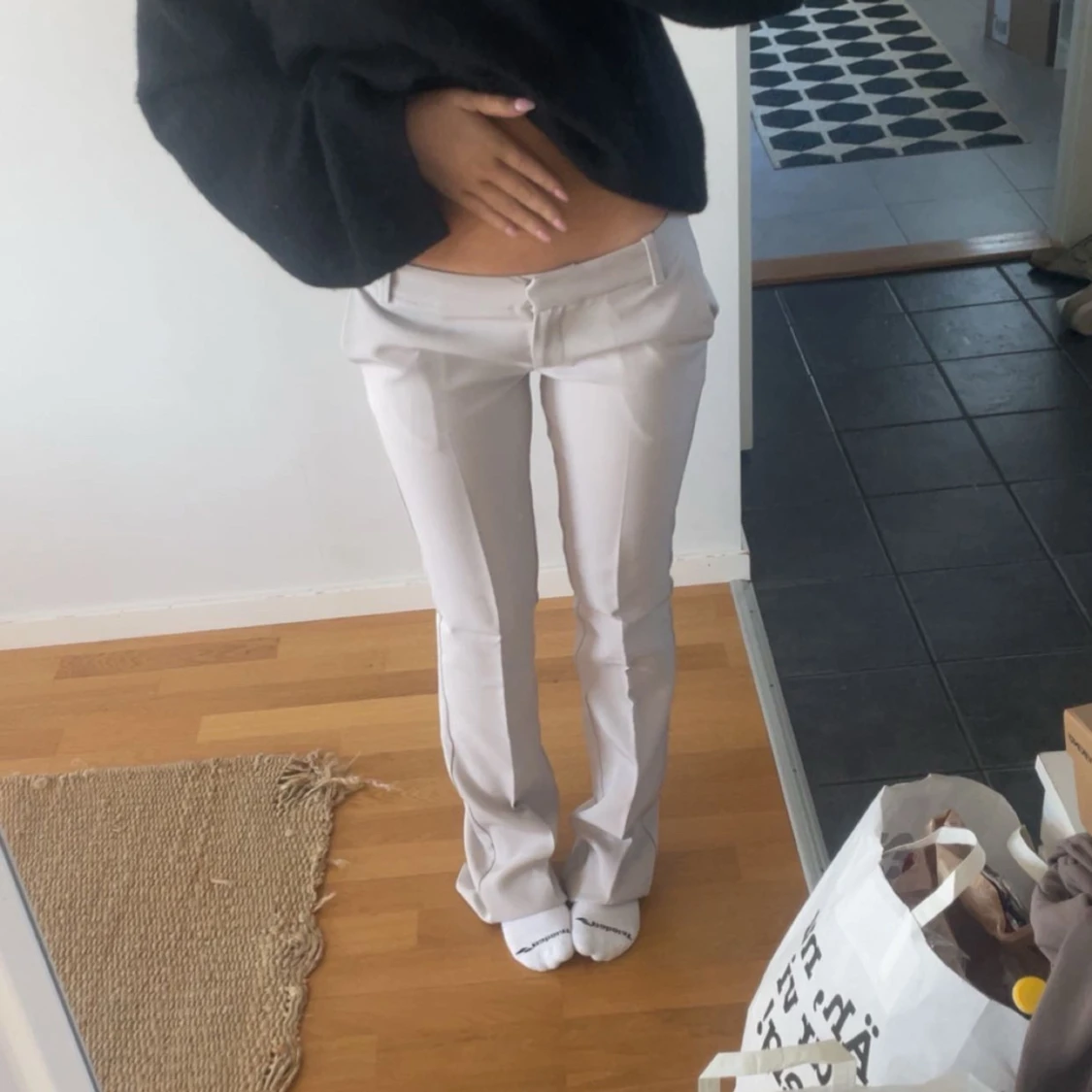 Säljer ett par beiga kostymbyxor från bikbok! Bra skick, har använt en gång. Dock är de för långa så därför är de lite smutsiga längst ner. De är i modellen tall och storlek 36 men jag är en 34 i vanliga fall 💓