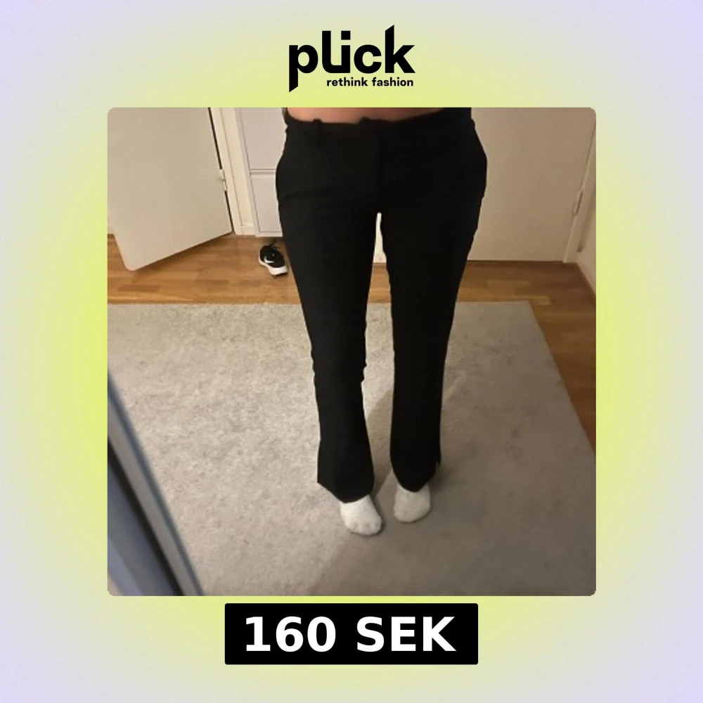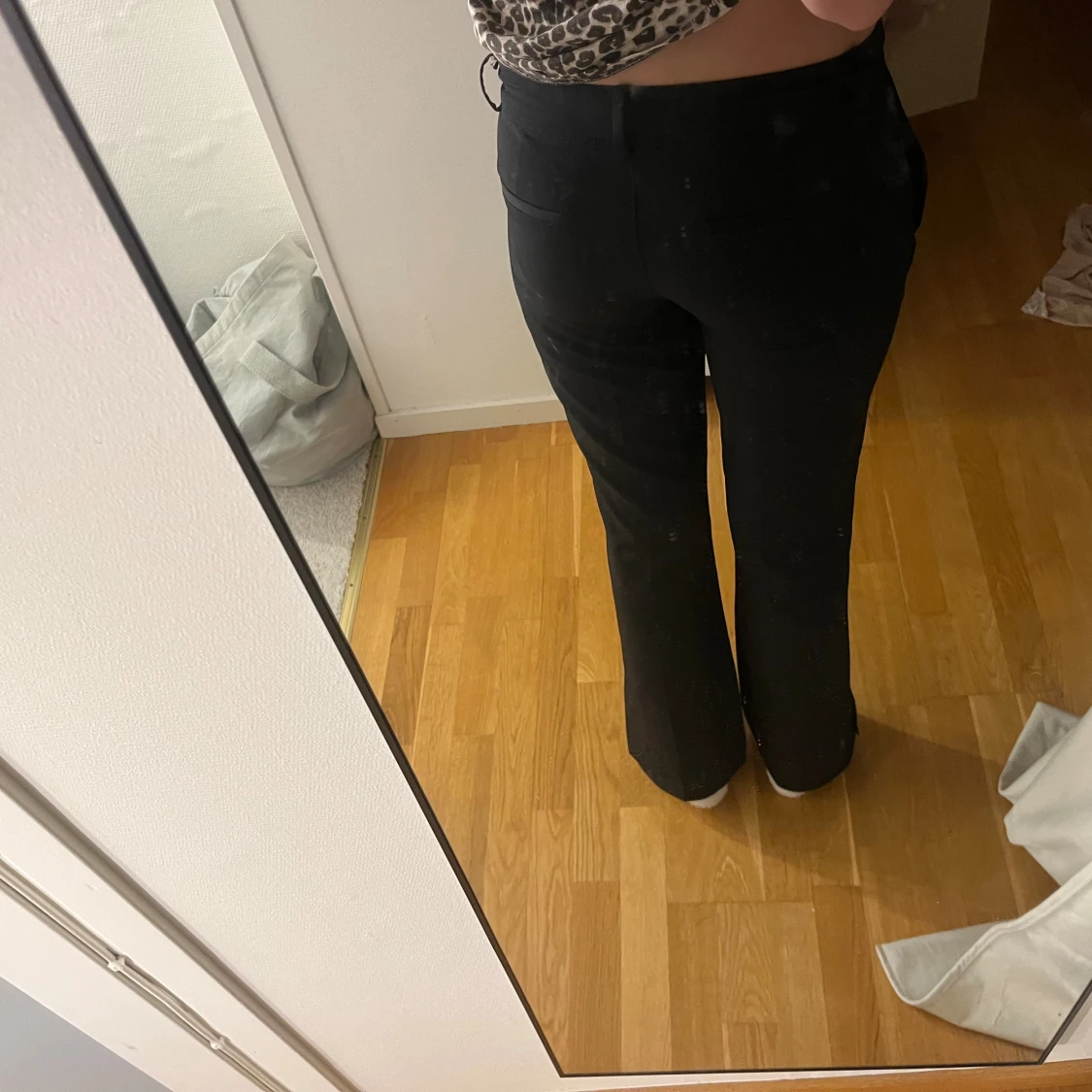 Snygga svarta kostymbyxor med bootcut passform och slits nertill vid benslut. Byxorna har låg midja och klassisk look med fickor bak. Perfekta för dig som gillar stilrena och trendiga byxor med en twist.