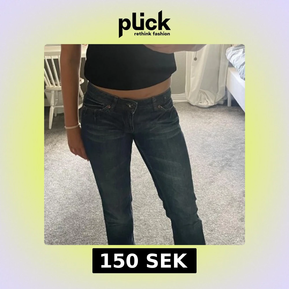 Säljer ett par mörkblå jeans som är i superbra sick, jag har sytt om dom i midjan för dom va lite förstora! Annars är dom superbra