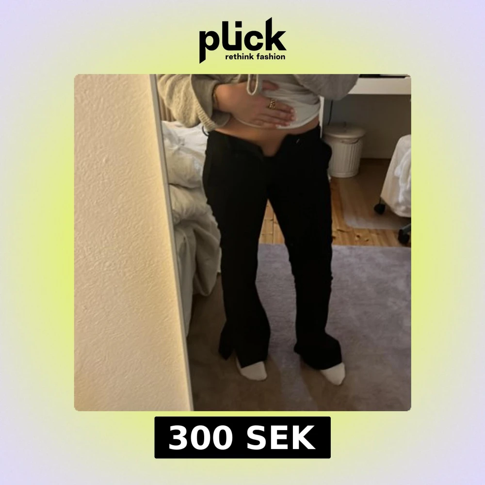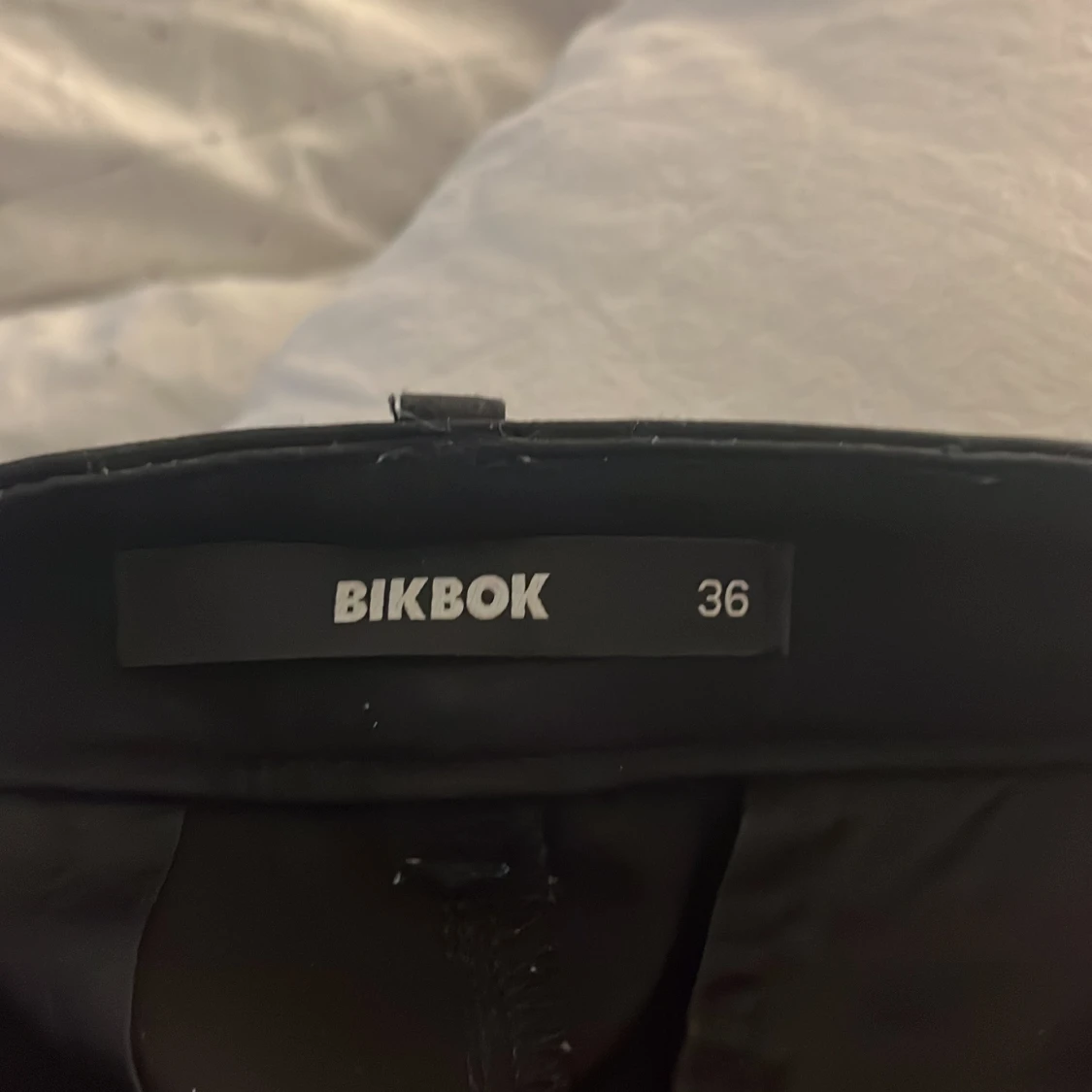 Snygga svarta kostymbyxor från BikBok i storlek 36. De är bootcut och är perfekta för en stilren look. Byxorna har fickor som rymmer din mobil och sitter jätte bra runt rumpan.