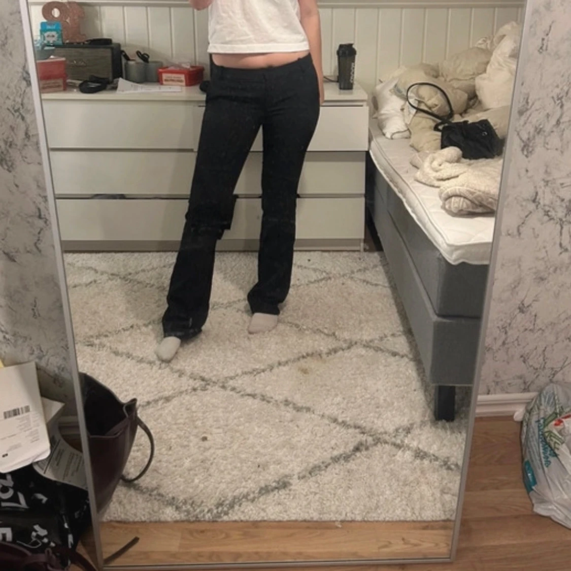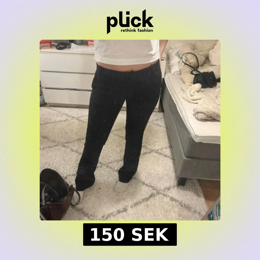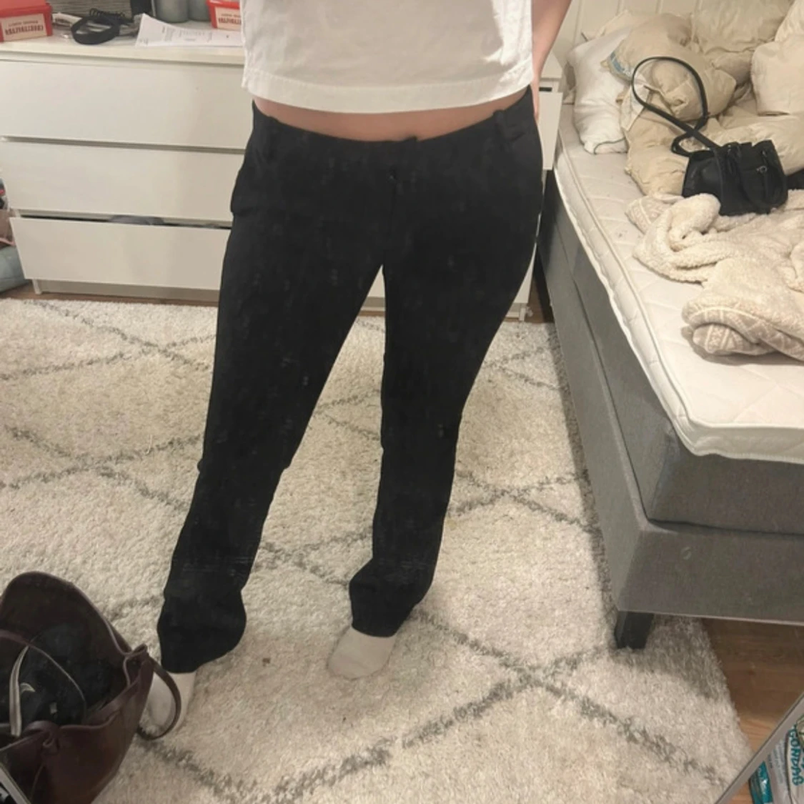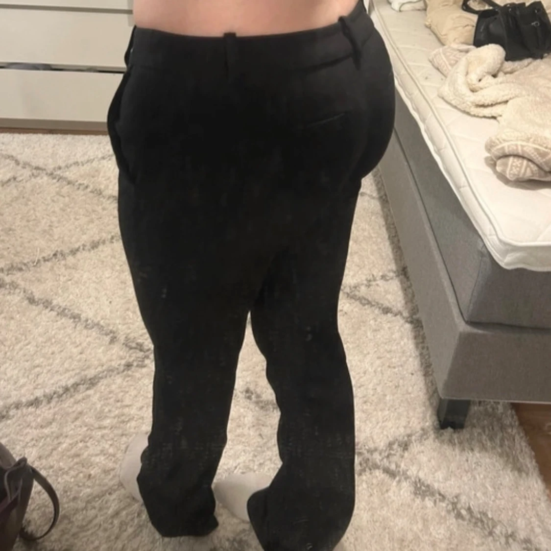 Skit snygga kostym byxor från bikbok i modellen Vera tall som är low waist bootcut liten räffla på sida bilden som man knappt ser eller tänker på