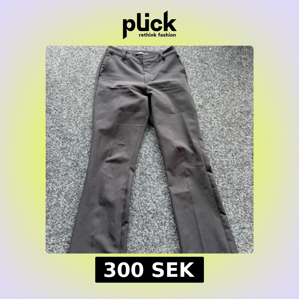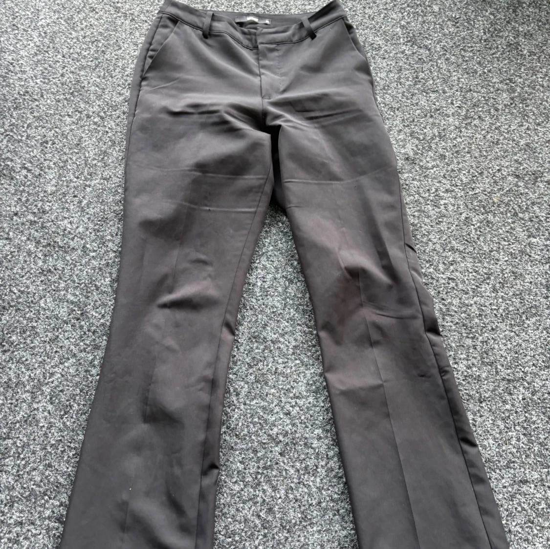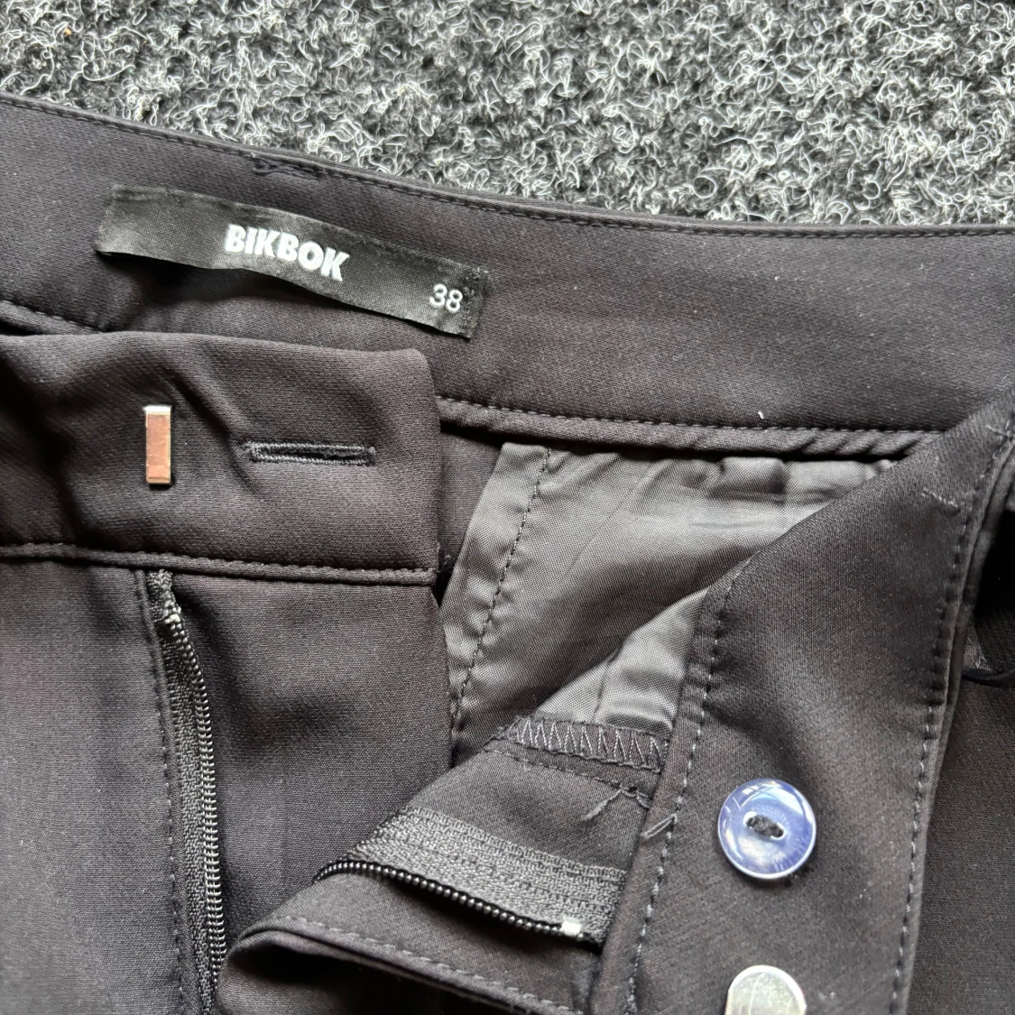 Svarta kostymbyxor från BikBok i storlek 38. Byxorna har bootcut-modell högmidjade med klassisk passform, bälteshällor och dragkedja med knapp framtill. Köpta för 500kr (pris kan diskuteras)