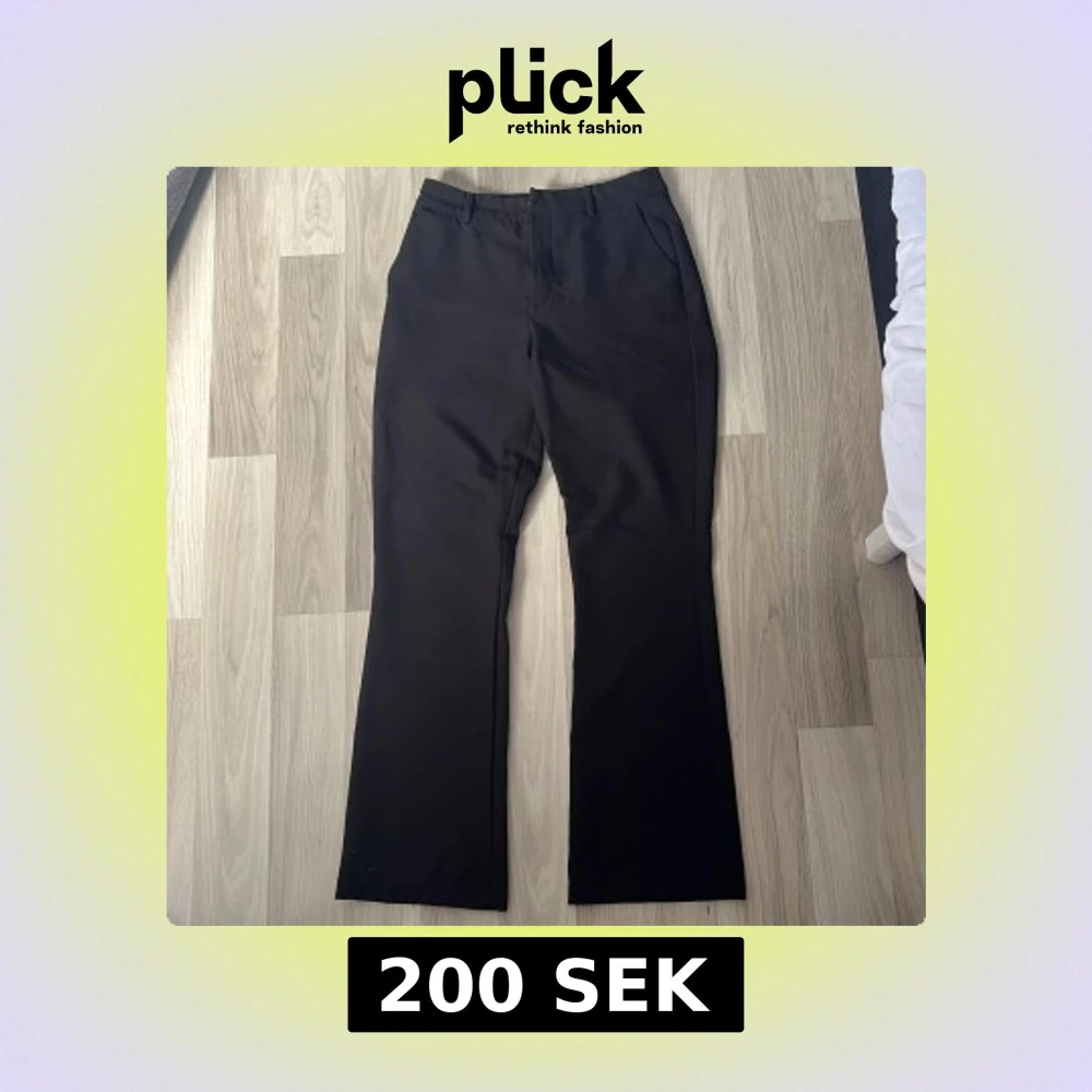 Svarta kostymbyxor från BikBok i klassisk modell med raka ben och pressveck. Byxorna har hällor för bälte, två fickor bak och stängs med dragkedja, knapp och hake. Perfekta för en clean och stilren look. Byxorna har en låg midja. Pris kan diskuteras.