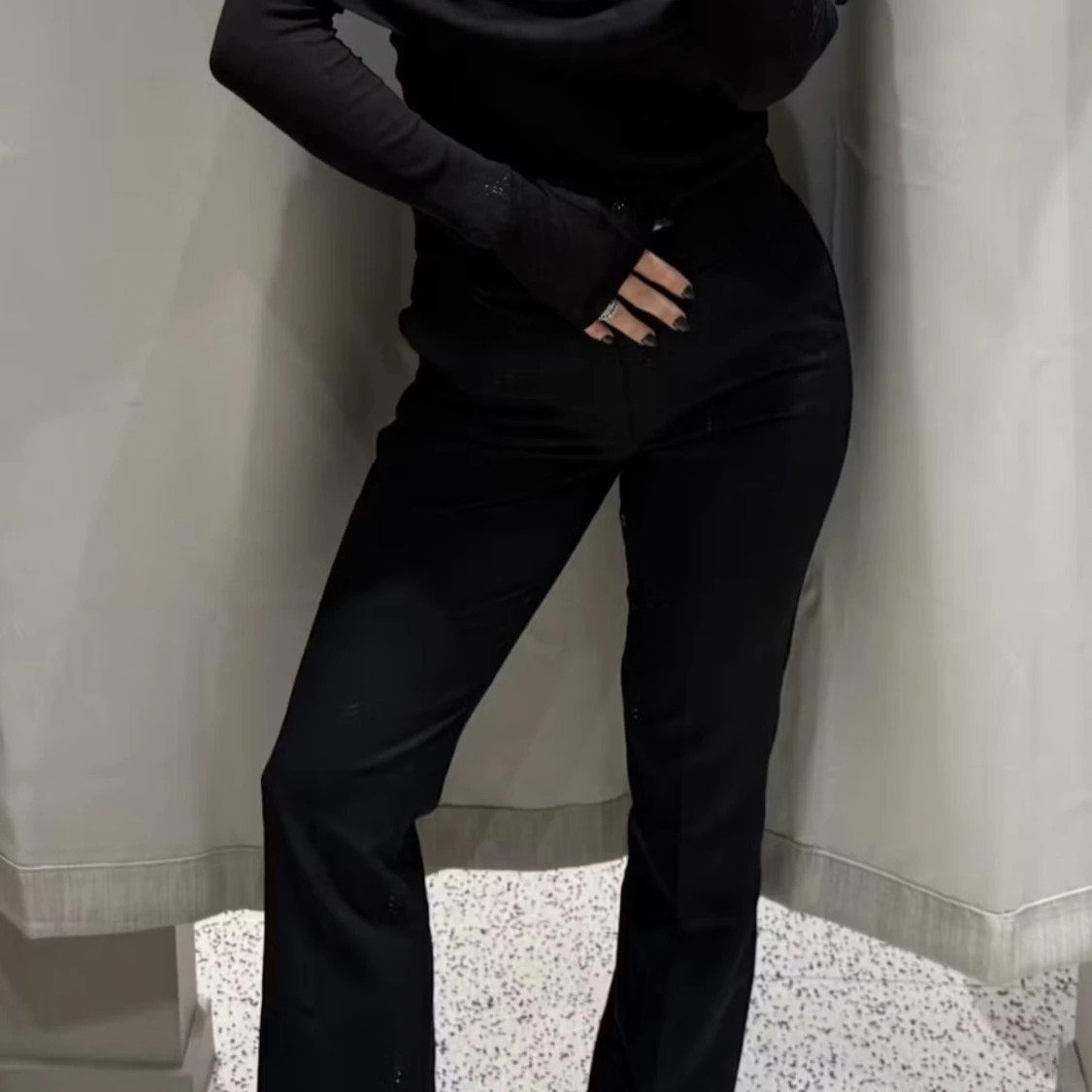 Säljer ett par svarta Vilma flare kostymbyxor från Bikbok då dom inte passar så bra. Byxorna är i jätte bra skick.