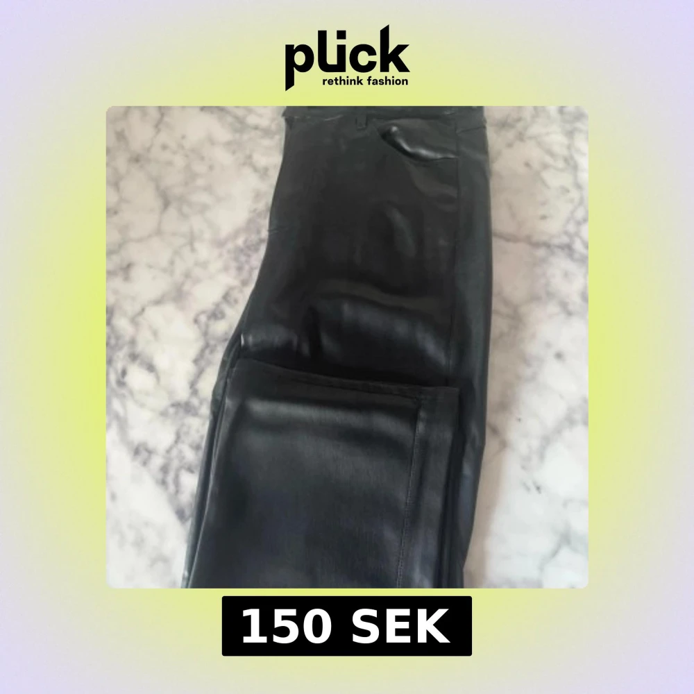 Snygga svarta byxor i skinnimitation. Byxorna har en rak passform. Använda ett fåtal gånger.