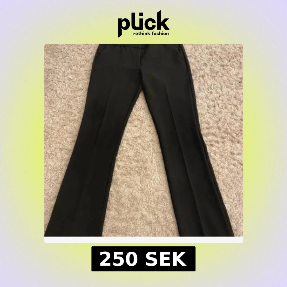 Snygga svarta kostymbyxor från BikBok i storlek 38. Byxorna har bootcut-ben och låg midja med pressveck framtill