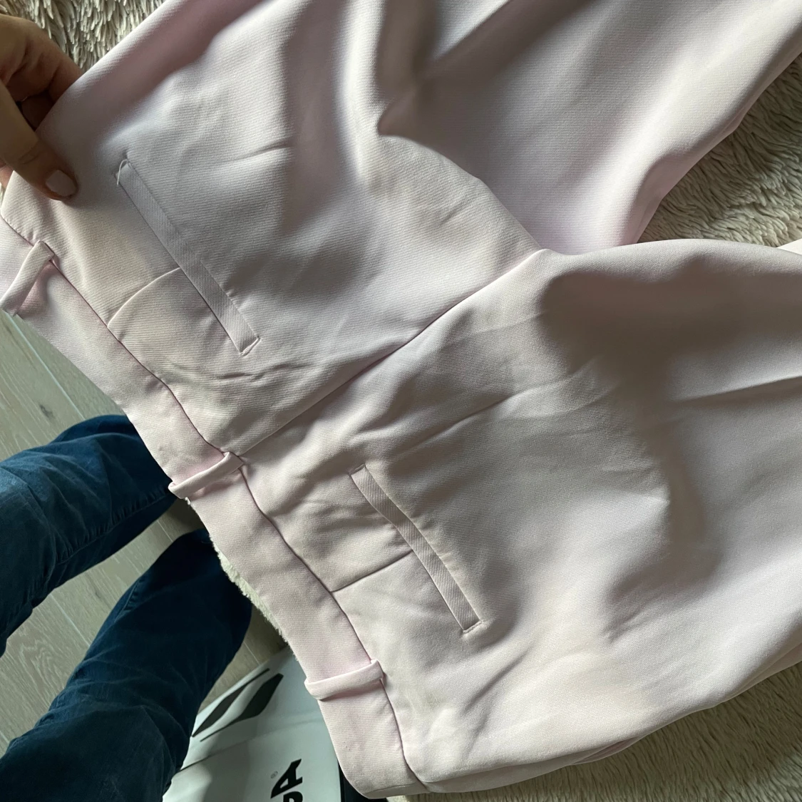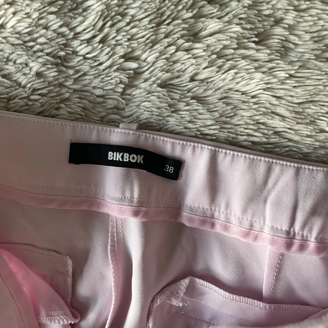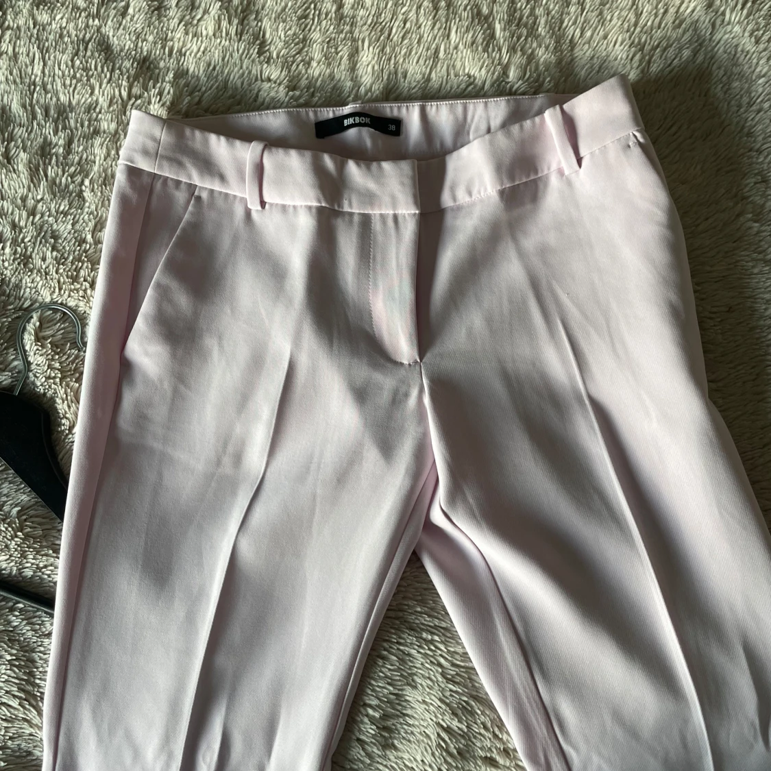 Snygga ljusrosa kostymbyxor från BikBok med en elegant design. Byxorna har en klassisk passform med raka ben och diskreta fickor. Perfekta för en stilren look. Lågmidjade. Säljer då dem aldrig kommit till användning s dem är helt nya
