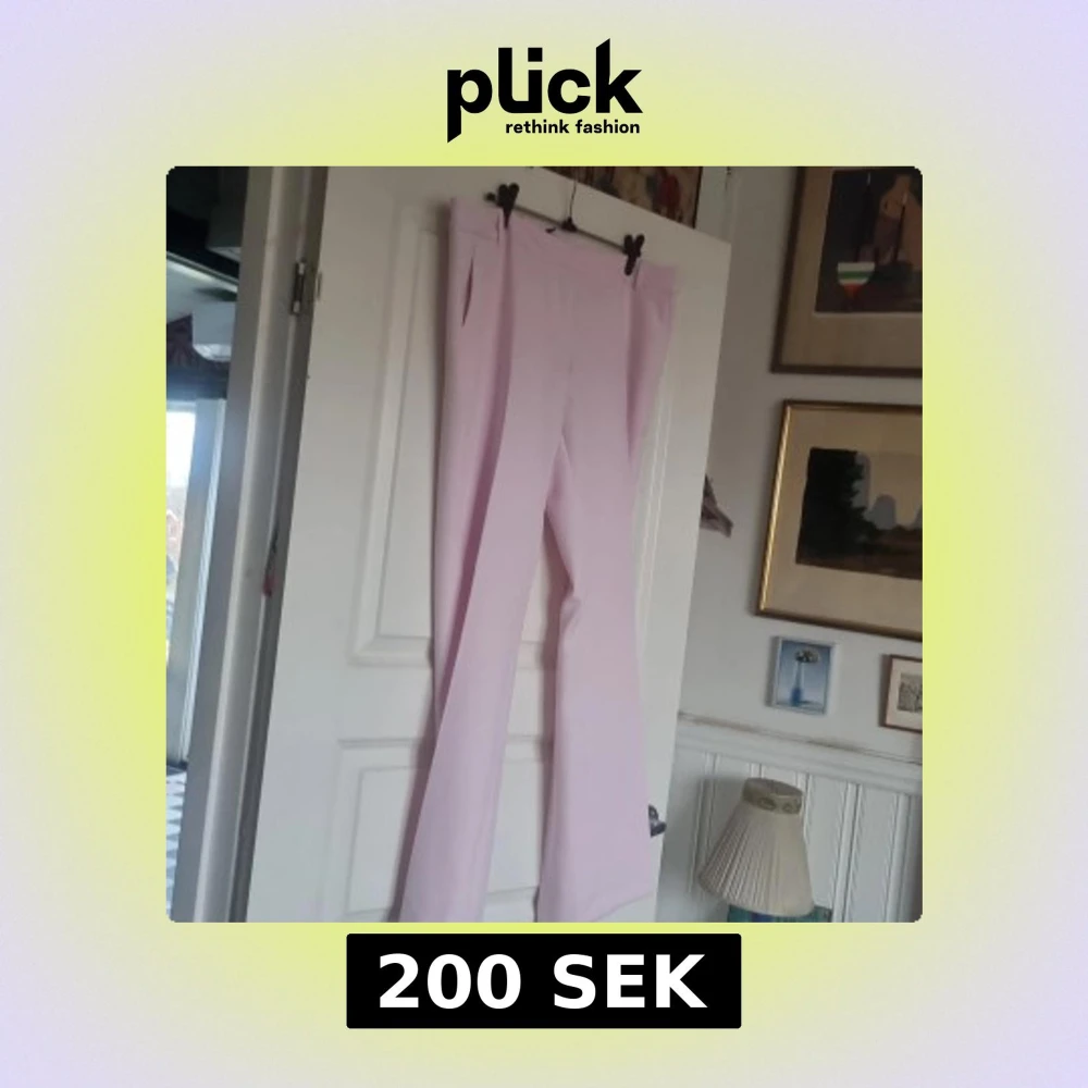 Snygga ljusrosa bootcut byxor från BikBok i storlek 42. Byxorna har hög midja, bälteshällor och diskreta fickor bak. Materialet är mjukt och har en lätt stretch för skön passform. Perfekt för dig som vill sticka ut med färg och stil.små i storleken. Passar L.
