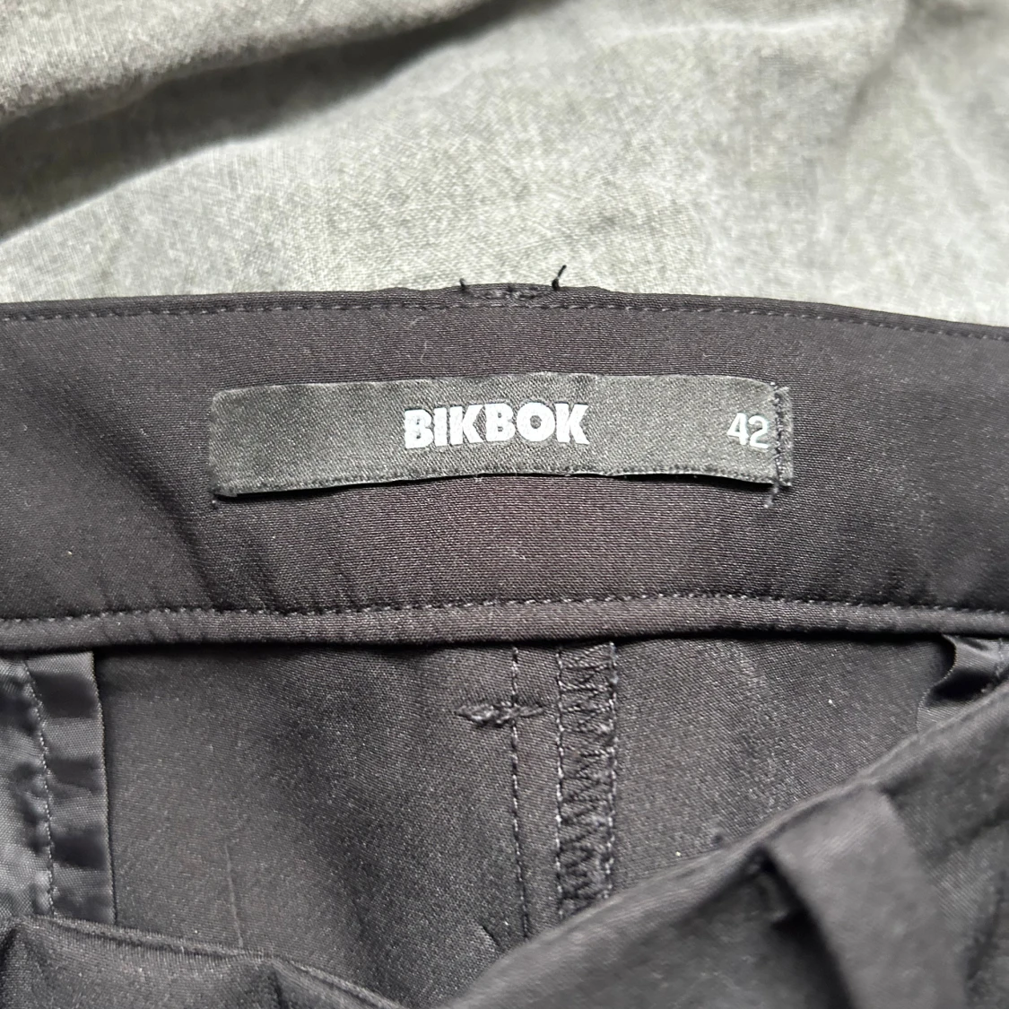 Ett par svarta kostymbyxor från BikBok i storlek 42. Byxorna har en klassisk design med hällor för bälte och fickor både fram och bak.