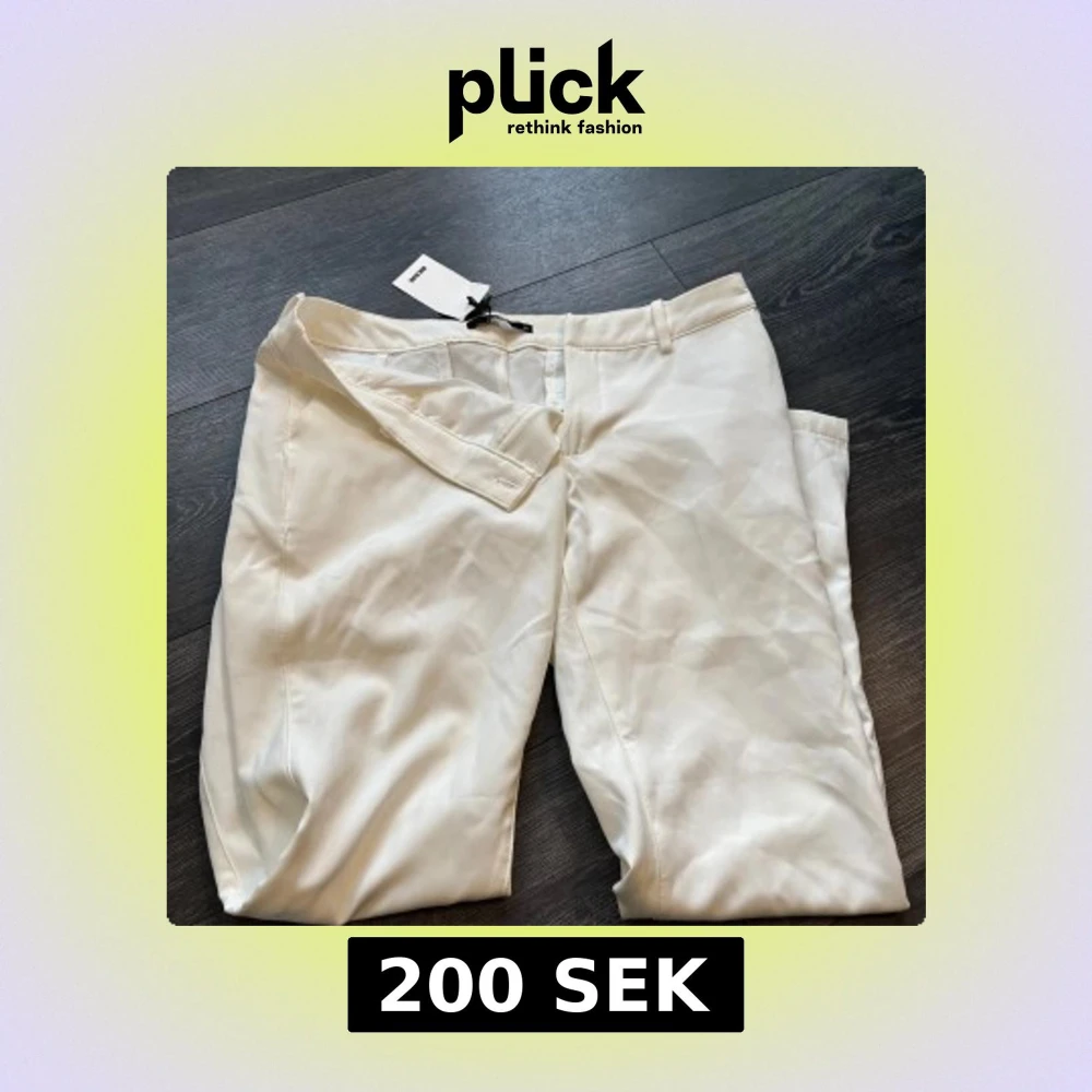 Snygga vita kostymbyxor från BikBok i storlek 42. Byxorna har klassisk passform med hällor för bälte och stängs med dragkedja och hake. Perfekta för en clean och stilren look.
