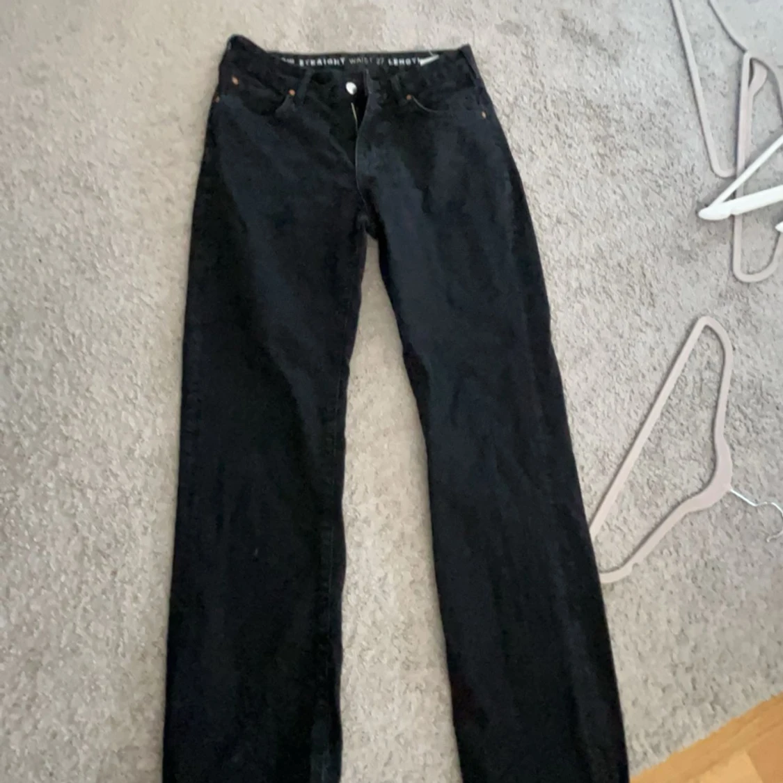 Dom sitter straight och sitter super bra på mig som är 160! säljer pga dom inte kommer till användning❤️ vill ni se bild hur dom sitter på så skriv. Köpta för 700kr