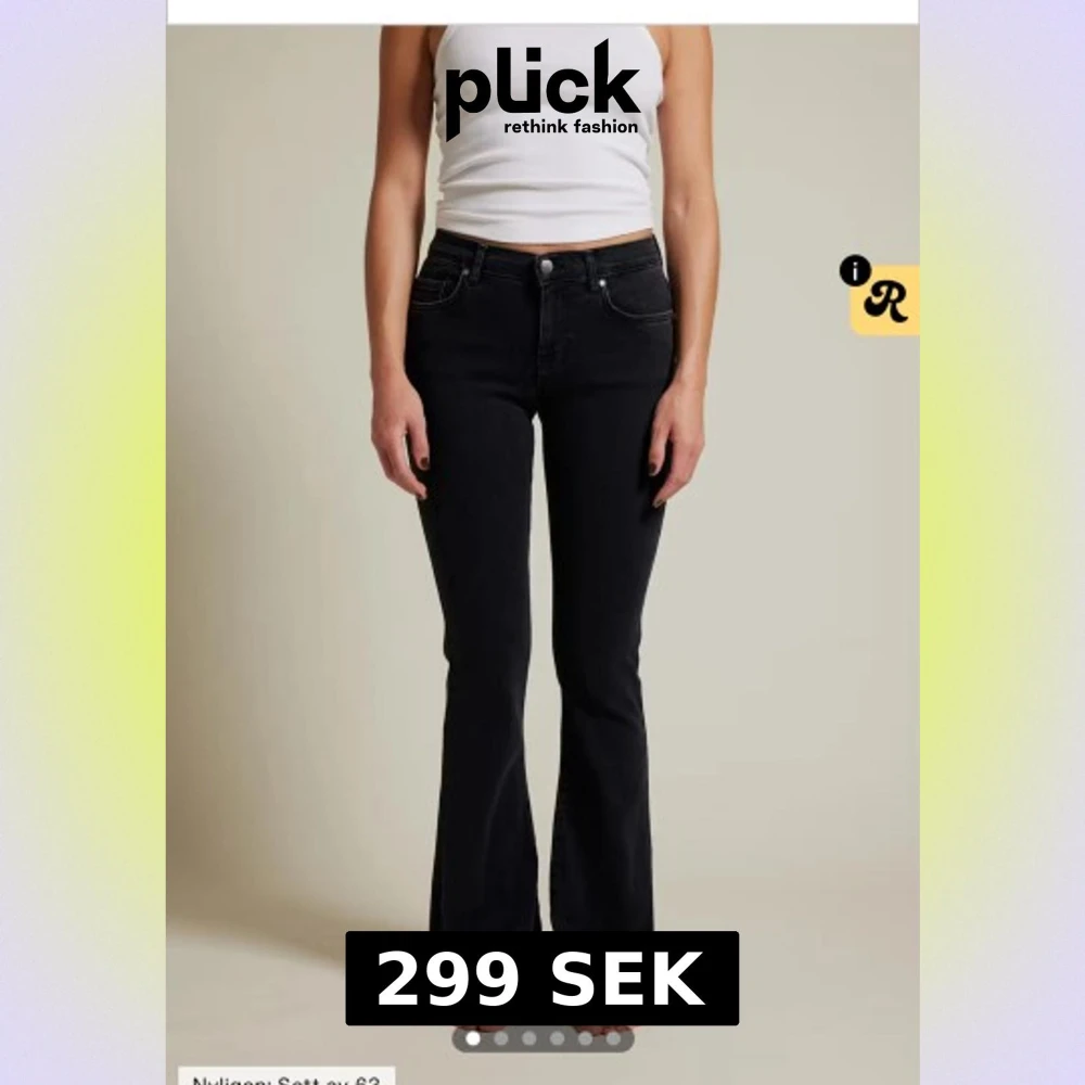Snygga svarta jeans från Bik Bok med bootcut passform och låg midja. Klassisk femficksmodell med dragkedja och knapp framtill. Jeansen är tillverkade i stretchigt denim som sitter bekvämt. Är i storlek xs och längd 33. Är någon cm för korta på mig som är 174cm lång. Även typ lite stora för mig som brukar ha storlek 34 i jeans eftersom dem är såååå stretchiga