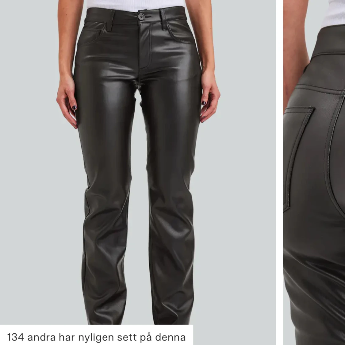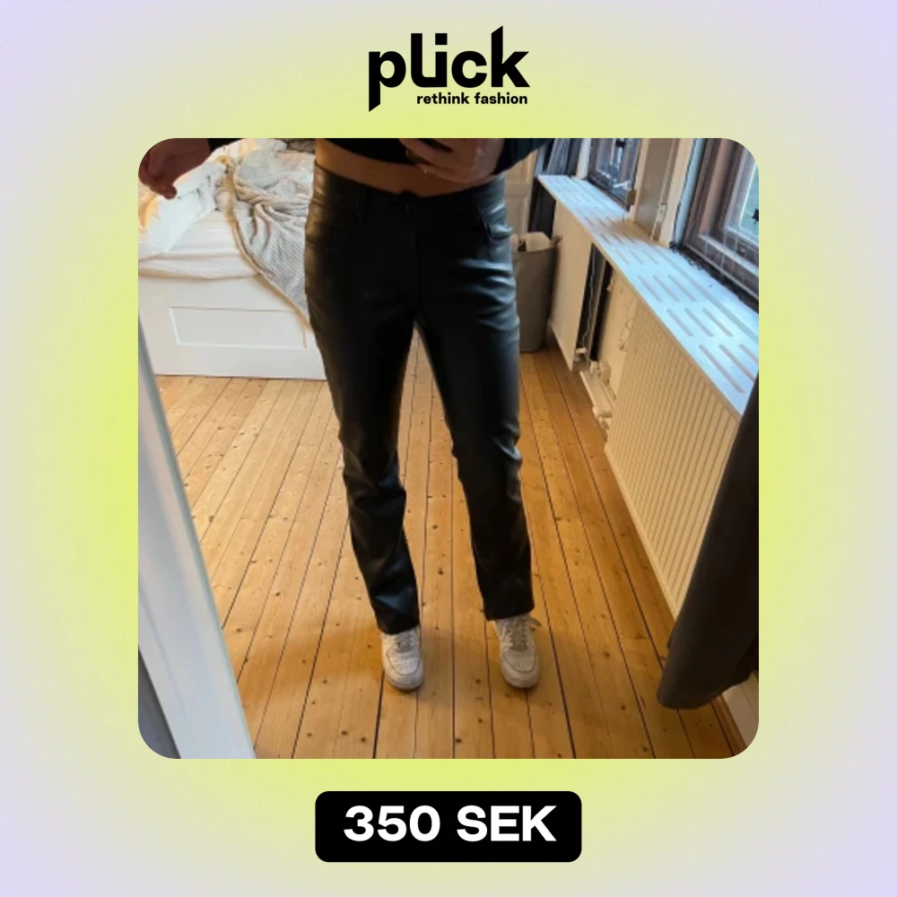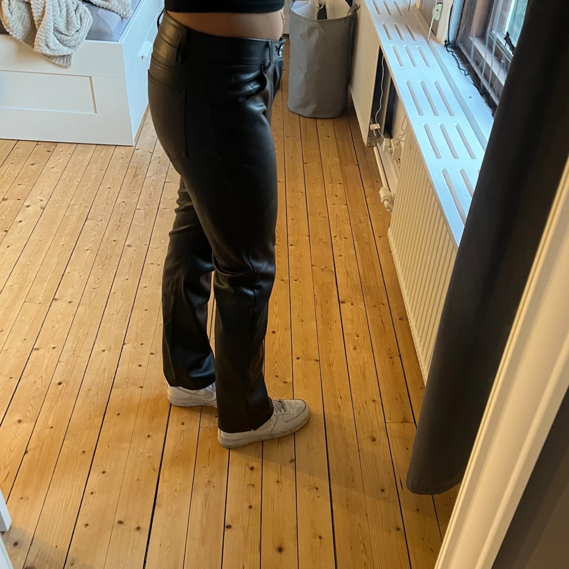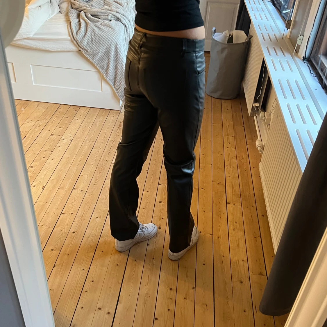 En par Lågmidjade skinnbyxor från bikbok i storlek 38. Jag har lagt ner dem så innerbenslängden är ungefär 82cm (typ aldrig använt)