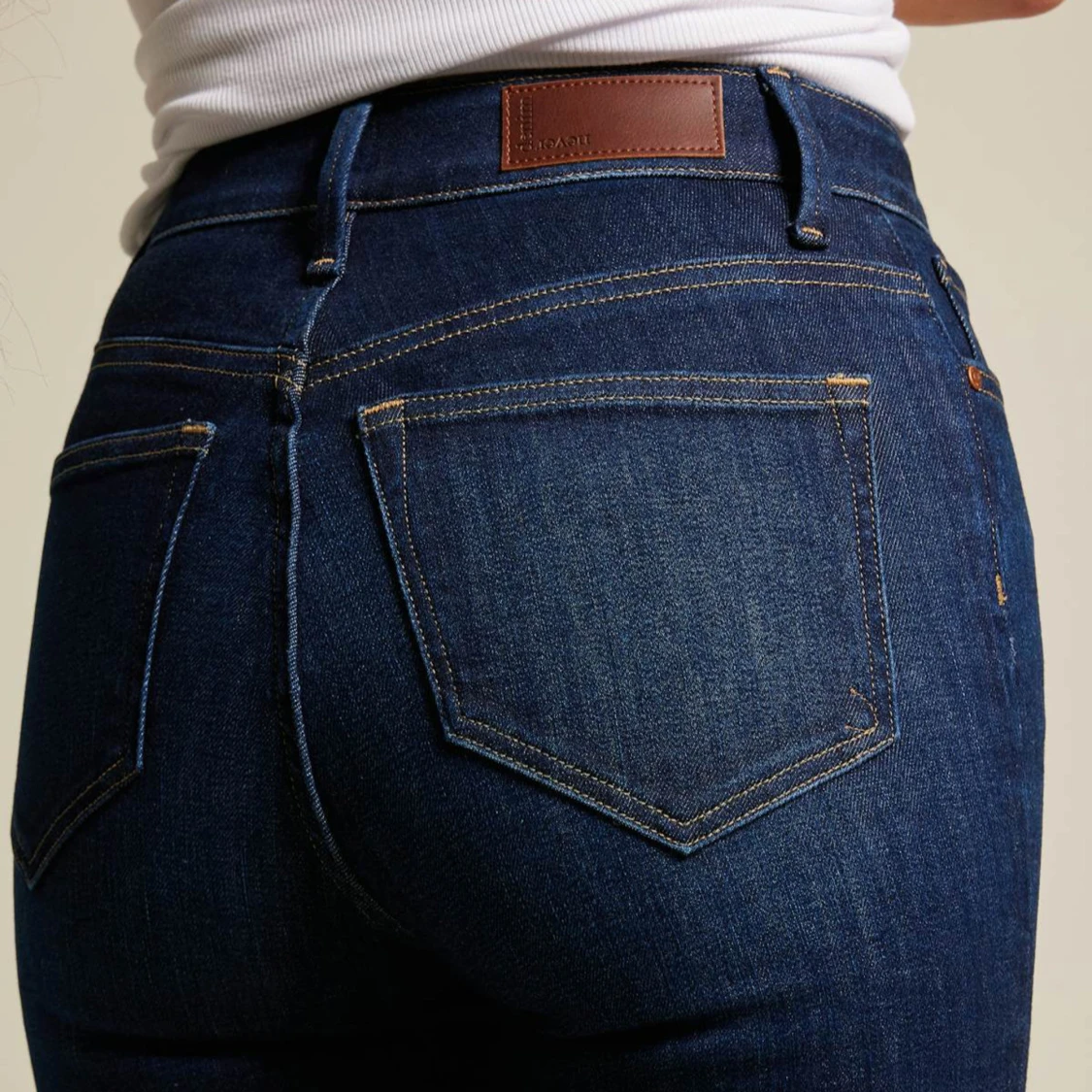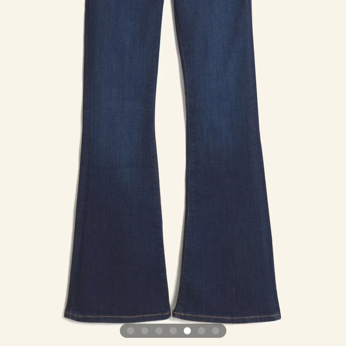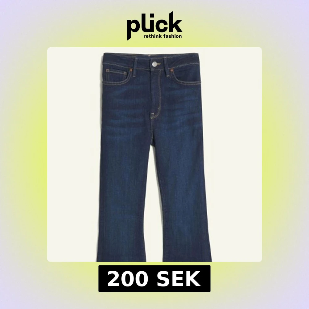 Snygga mörkblå bootcut jeans från BikBok med kontrasterande sömmar och en knappgylf. Storlek xs/31, helt nya men prislappen är borta, endast testade💞Nypris 399;- men säljer för 200🙌🏽