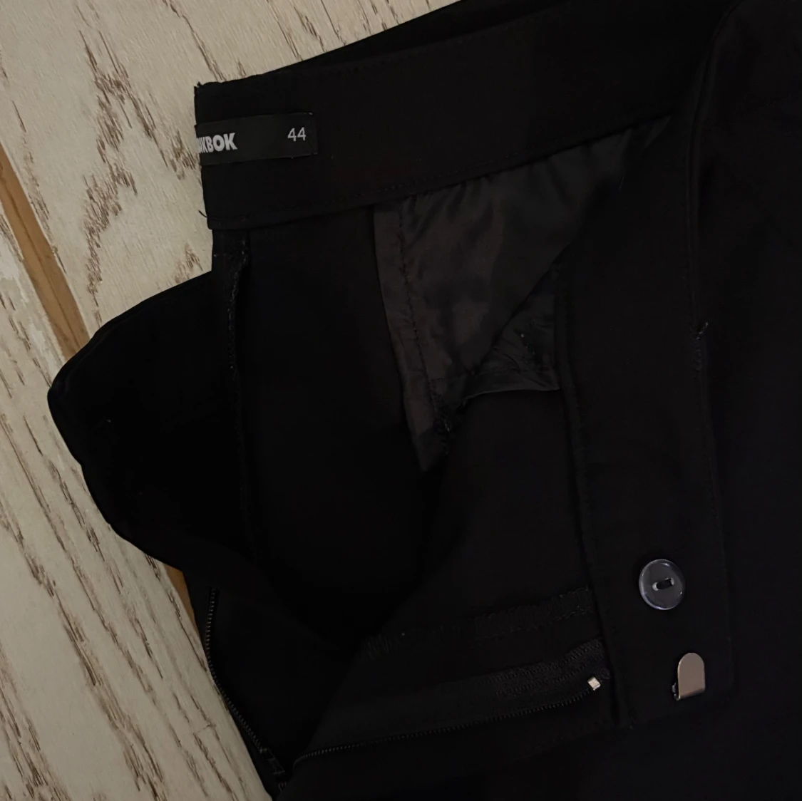 snygga populära svarta kostymbyxor från bikbok! dom är lågmidjade och passformen är perfekt. på mig som vanligvis har 38/40 i byxor så är dessa lite större och sitter lite loose. men tycker detta är väldigt snyggt, och säljer dessa pågrund av att jag har massa andra kostymbyxor. skriv till mig om du har fler frågor 💞