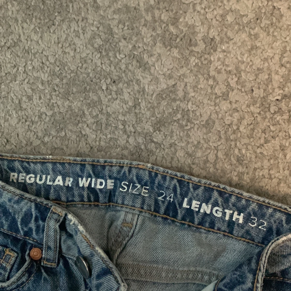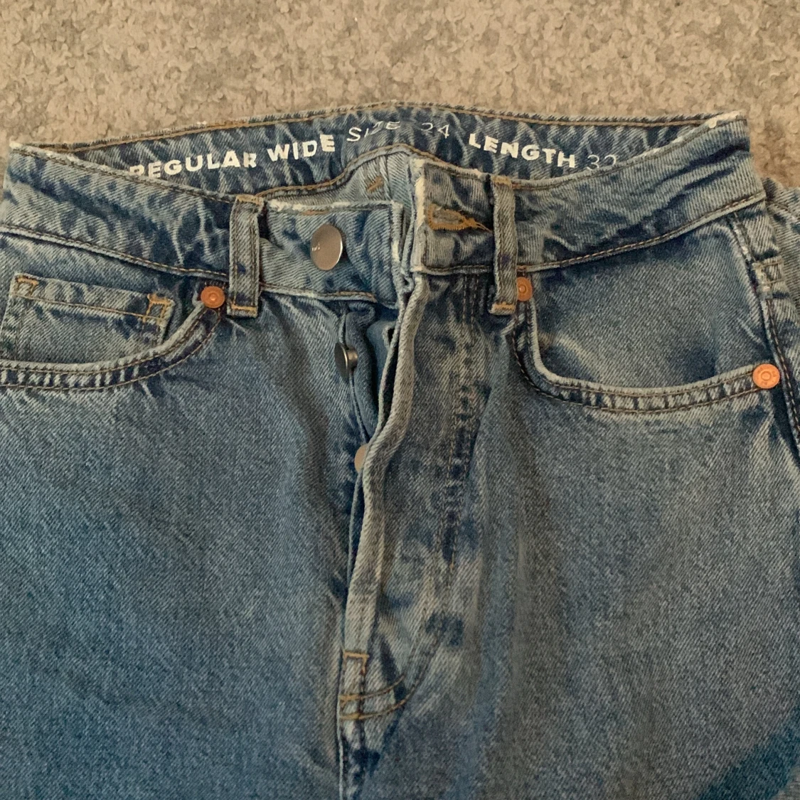 Snygga blå jeans med en regular wide passform. De har en klassisk femficksdesign och knappgylf. Högmidjade. Använda fåtal gånger. Nypris 600kr.