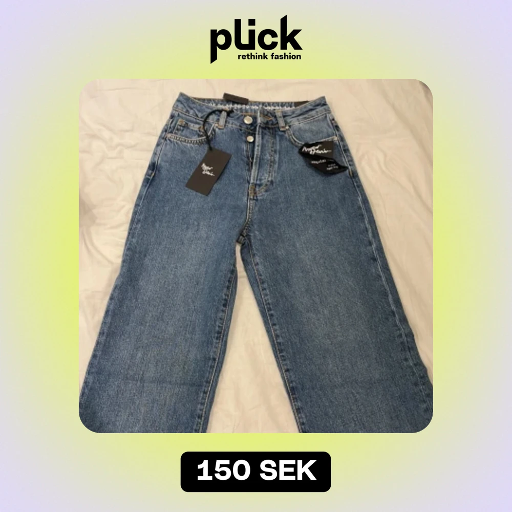 blåa bikbok jeans, helt oanvända med etikett kvar. Köpta i fel storlek, straighta och högmidjade.