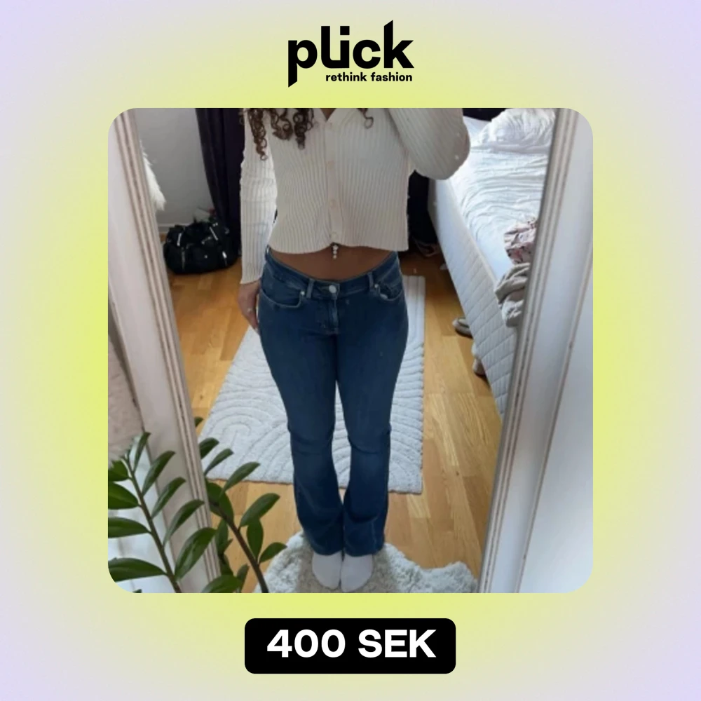 Jag säljer ett par superfina slutsålda mörkblå jeans från bikbok! Jag brukar bära xs och dom sitter superbra! Nypris är 699kr! Dom är köpta i längd 33 men har sytt upp dom till ca 32. Som preferens är jag 165cm och dom är perfekt långa!