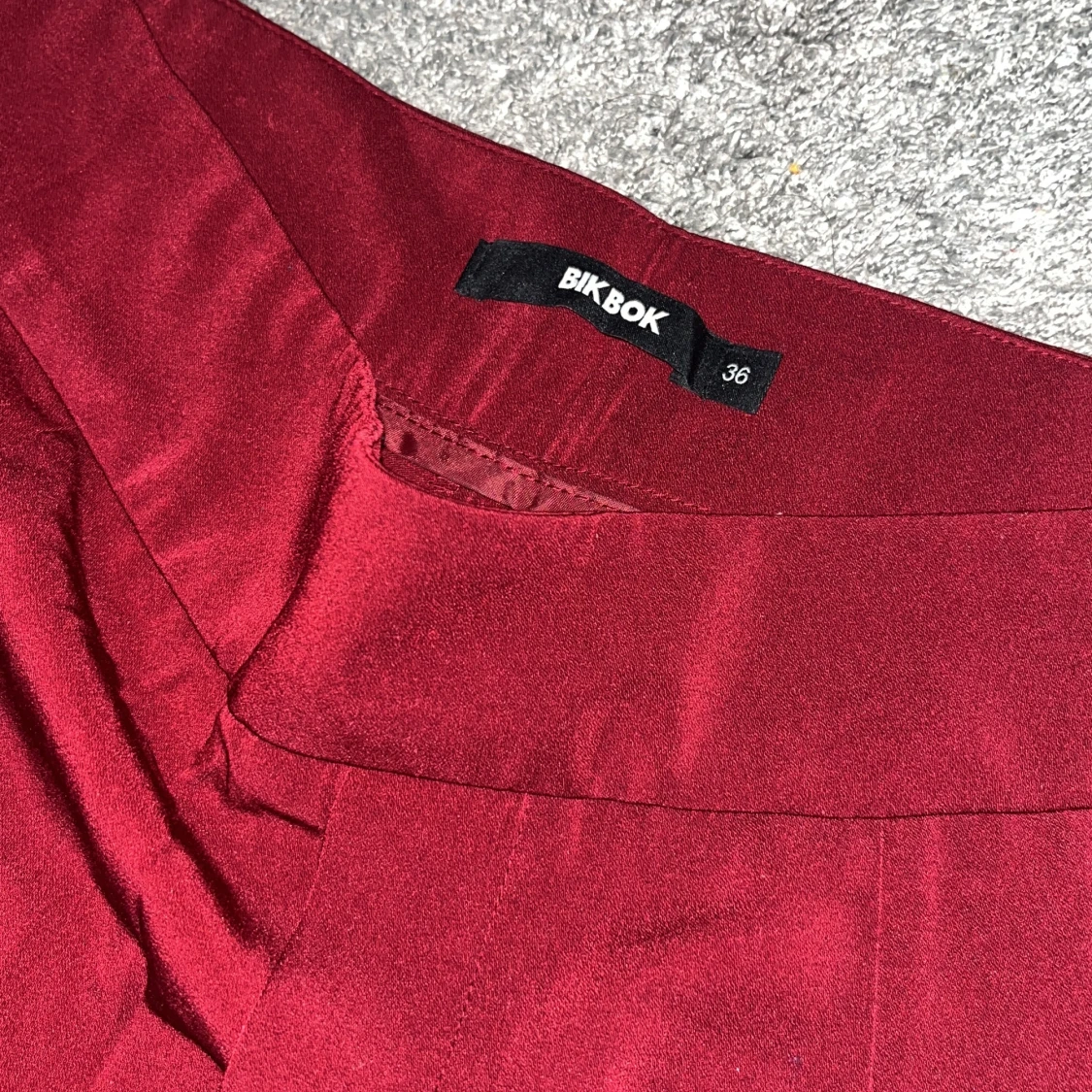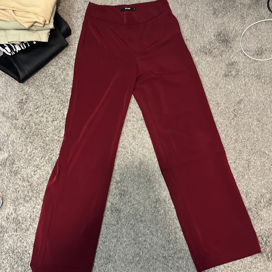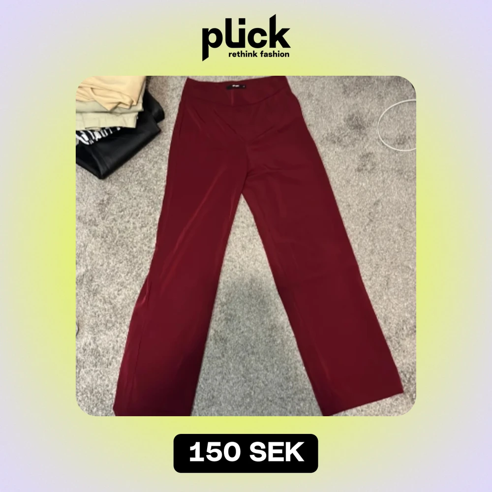 Säljer en likadan kostymbyxor från bikbok fast i beige! Stolek S!🔥 jättefina vinröda byxor som är lite stretchiga