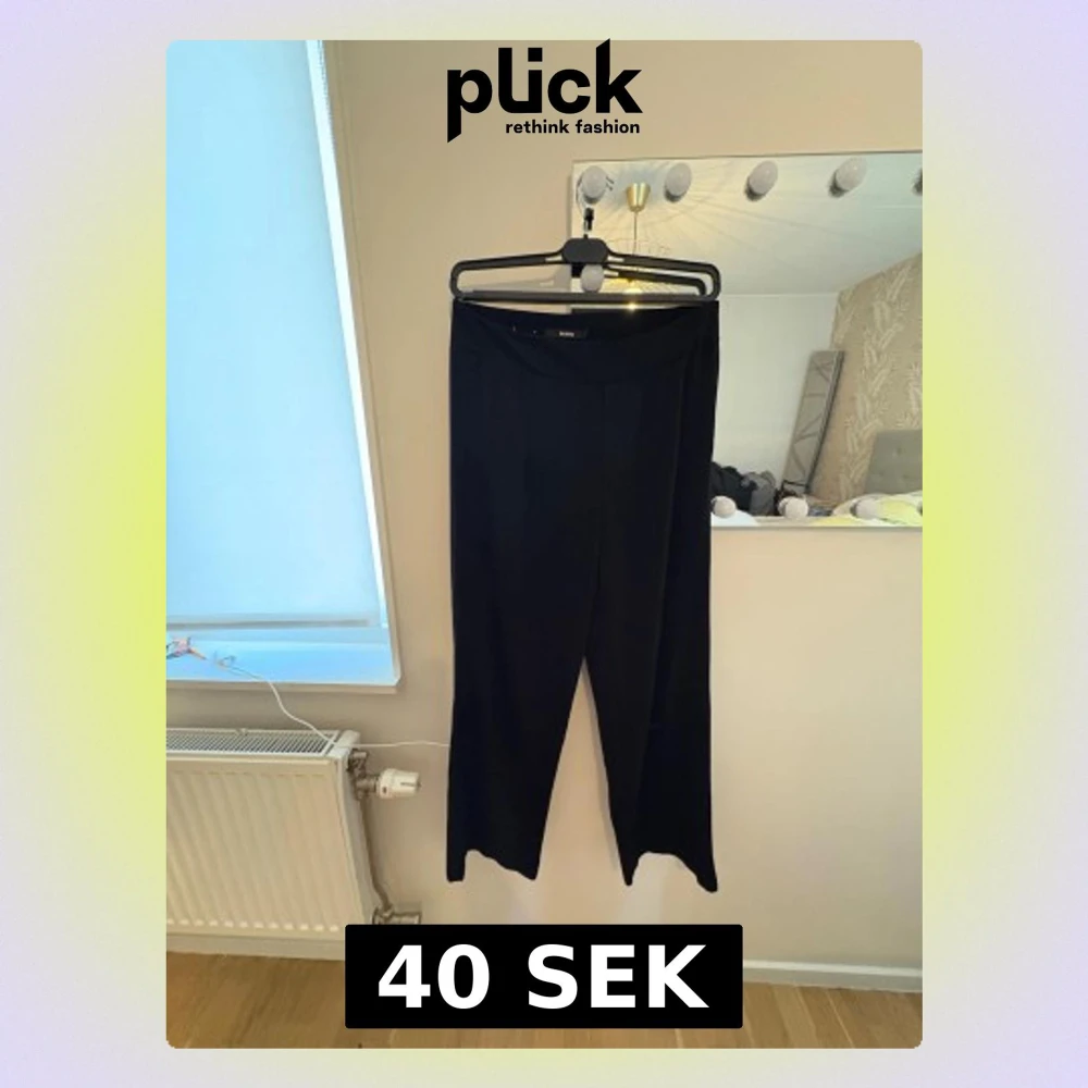 Svarta byxor från BikBok i storlek M. De har en rak och vid passform med hög midja och är tillverkade i ett mjukt, lätt material som faller snyggt. Perfekta för en chill och stilren look.