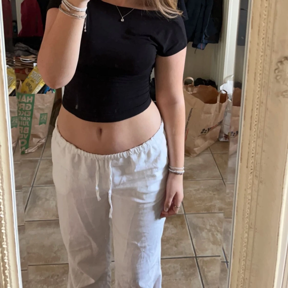Linnebyxor från bikbok, har inte använt mycket då de är för stora för mig. Använda kanske 10 gånger, bra skick💗