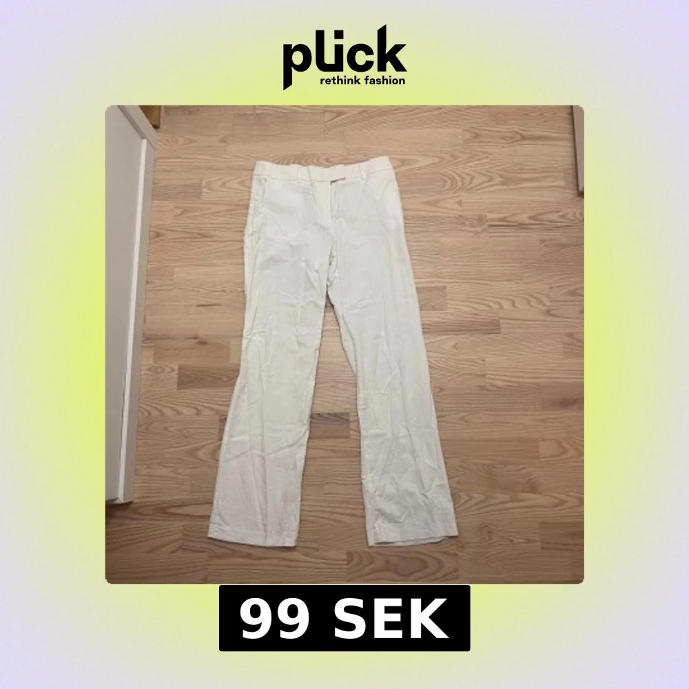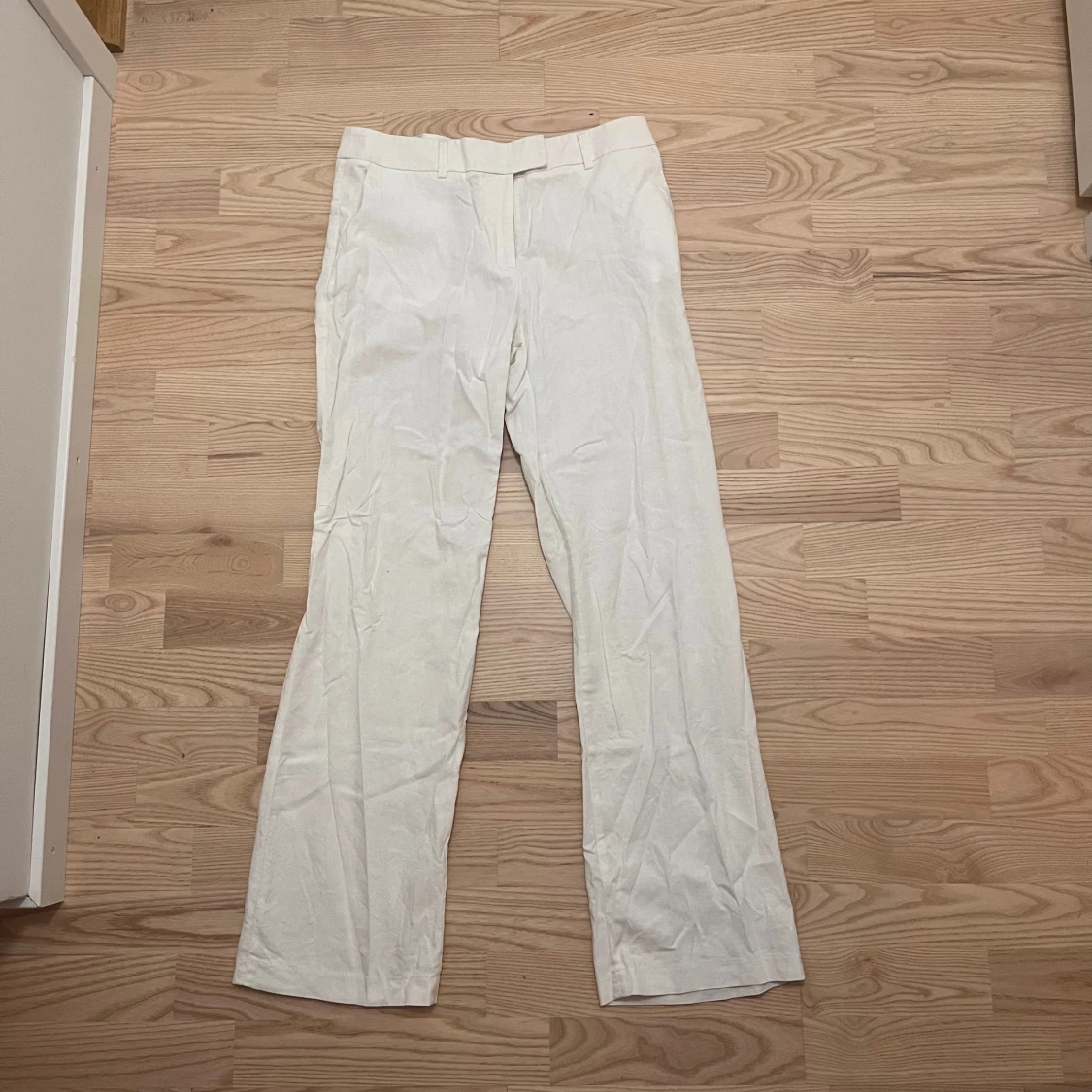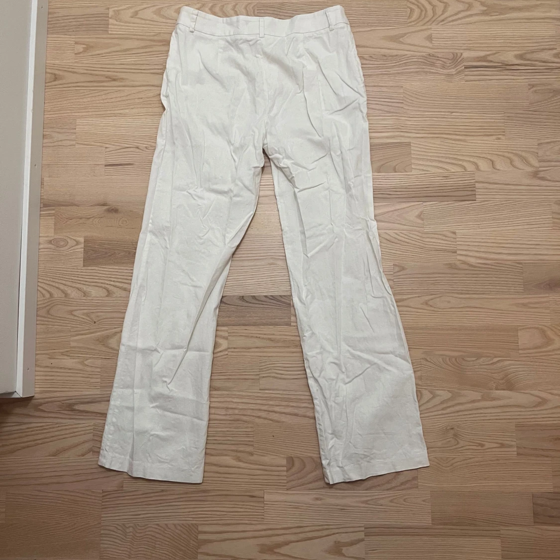 Snygga vita kostymbyxor med raka ben och klassisk passform. Byxorna har hällor för bälte och stängs med dold knäppning. Perfekta för en clean och stilren look. Materialet känns mjukt och har en lätt struktur.