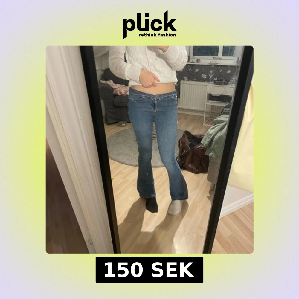 Säljer ett par blå jeans med låg/mid midja och bootcut-ben. Jeansen har klassisk femficksdesign och är i ett mjukt denimtyg som sitter tajt upptill och släpper ut vid vaden. Storleken är: S, längd: 31 och de är från Bikbok. Jeansen är i fint skick och säljs endast då de är lite korta🥰
