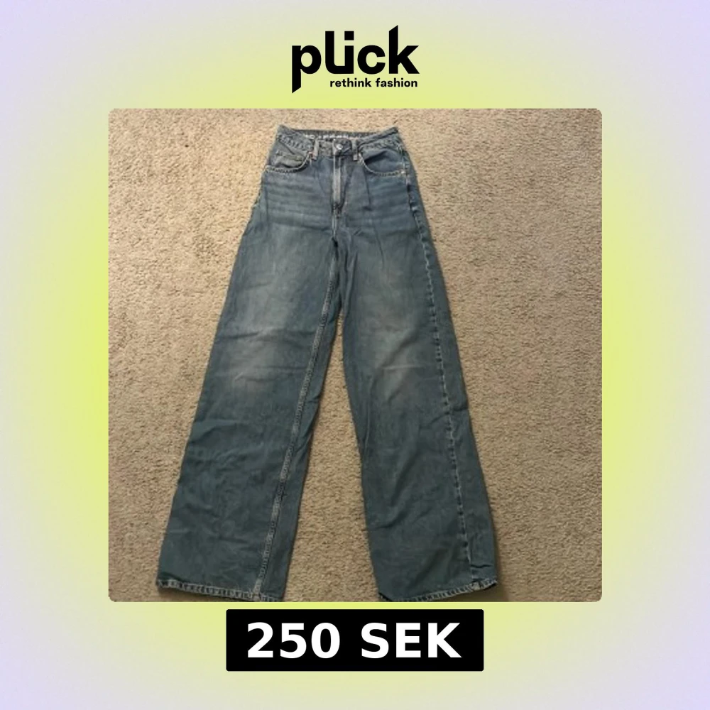 Säljer ett par blå wide jeans med hög midja. De har en klassisk femficksdesign och är perfekta för en avslappnad stil. Passar bra till sneakers eller boots. Jeansen var för långa för mig som är 163cm. Skulle rekommendera byxorna till dig som är 170cm och uppåt