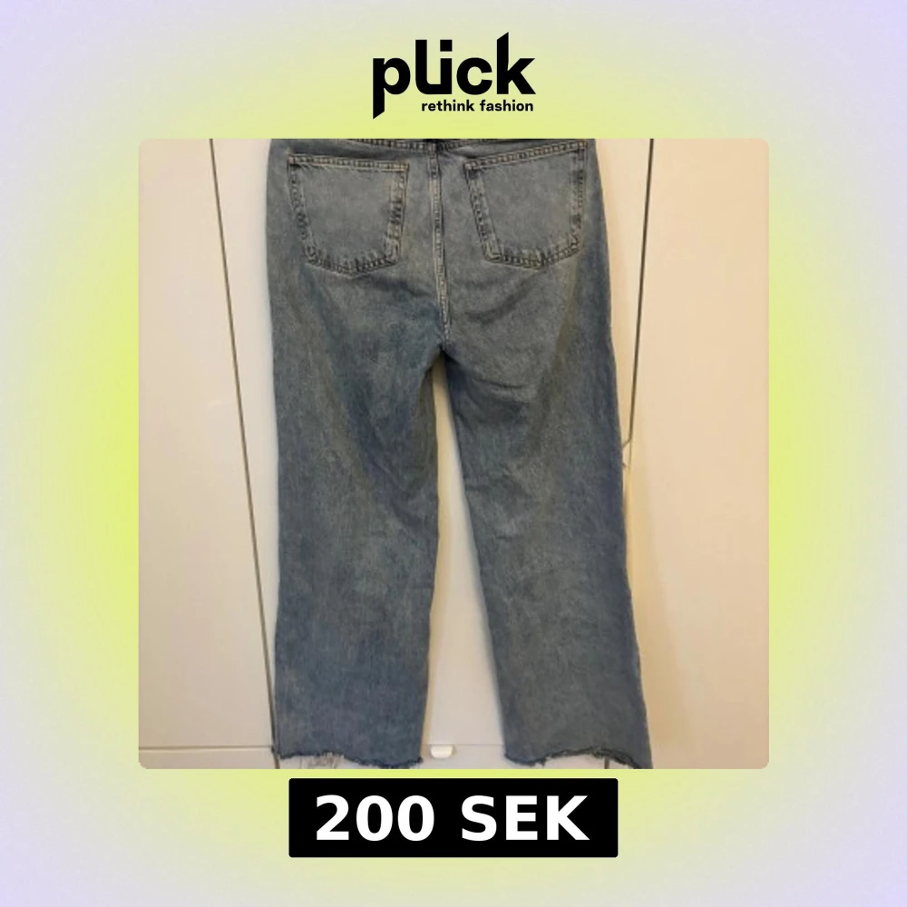 Snygga ljusblå jeans från Never Denim by Bik Bok i modellen Tower Wide. Byxorna har raka, vida ben och råa, avklippta benslut för en trendig look. Klassisk femficksmodell och hög midja. Perfekta för dig som gillar en avslappnad stil.