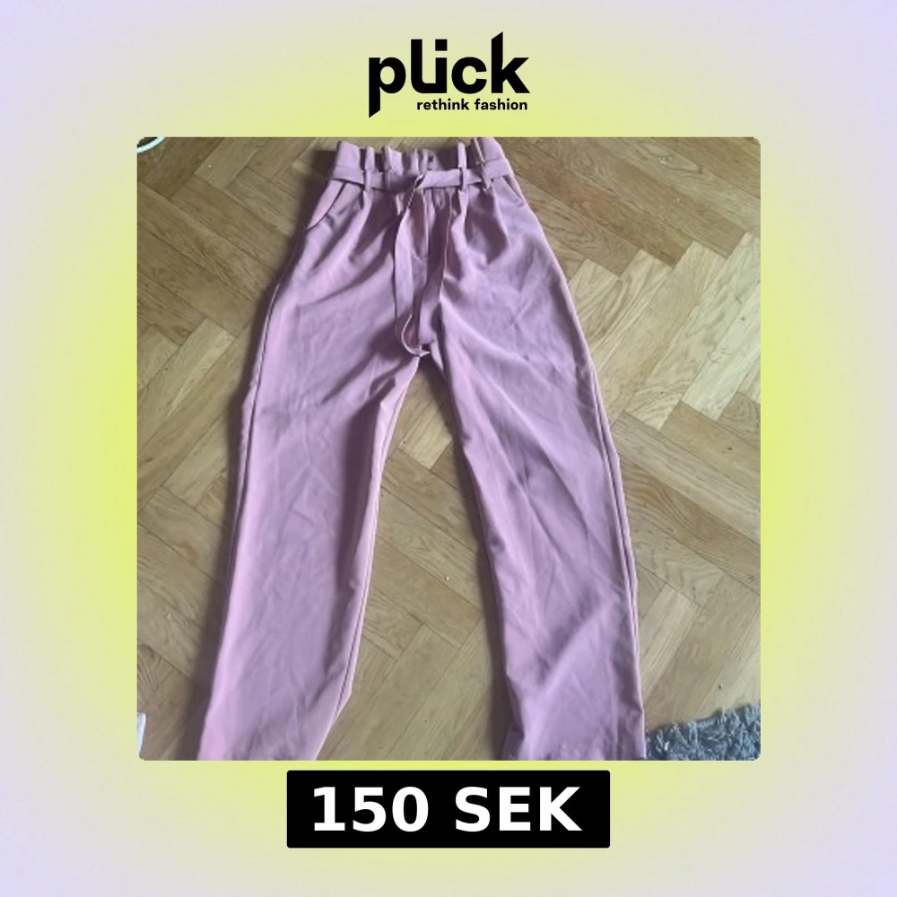 Snygga ljusrosa kostymbyxor från Bik Bok i storlek XS. Byxorna har hög midja, avsmalnande ben och ett matchande tygbälte i midjan. Tillverkade i ett mjukt, vävt material med hällor och knäppning framtill. Perfekta för en trendig och chic look.