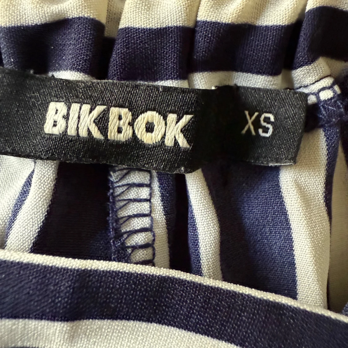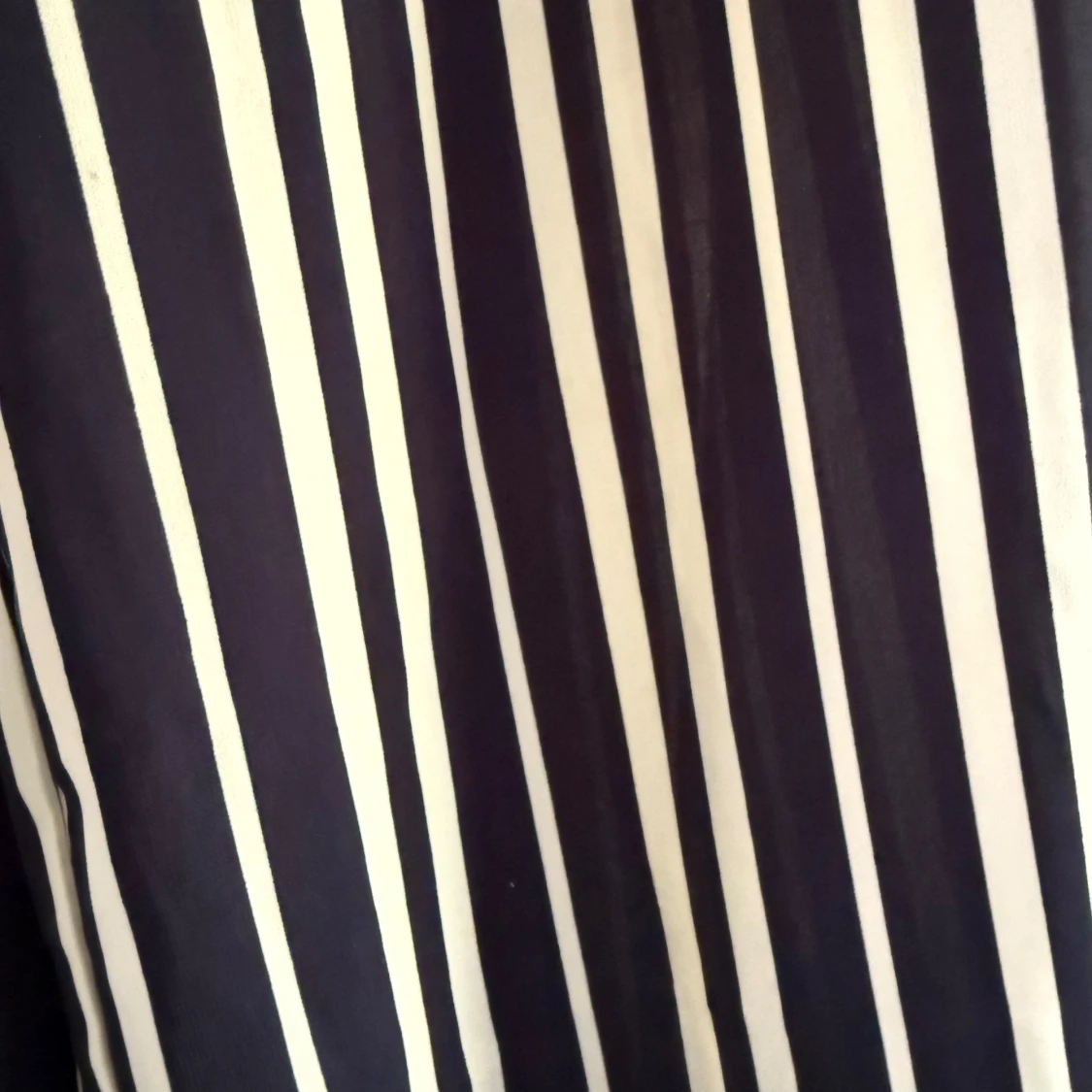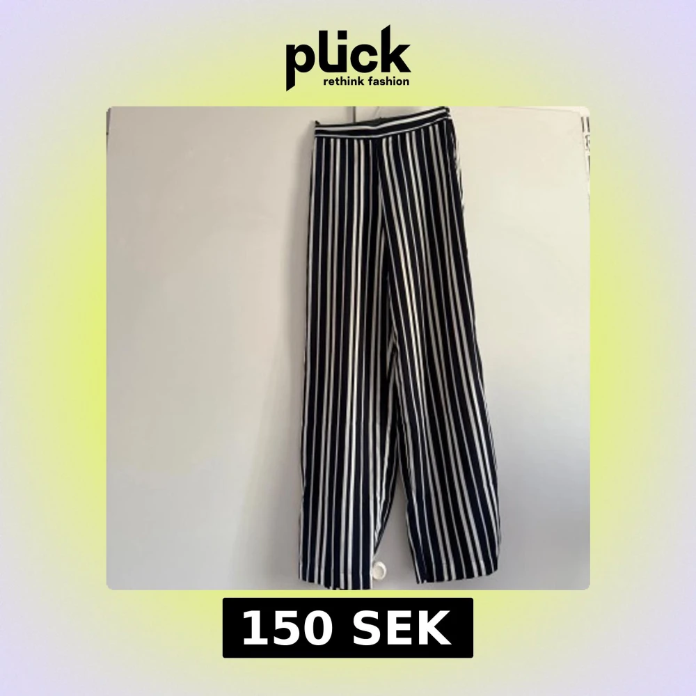 Säljer ett par blåvita byxor med vertikala ränder och resår i midjan. Byxorna har en rak och lös passform med breda ben,samt ett luftigt tyg vilket ger en avslappnad och trendig look.