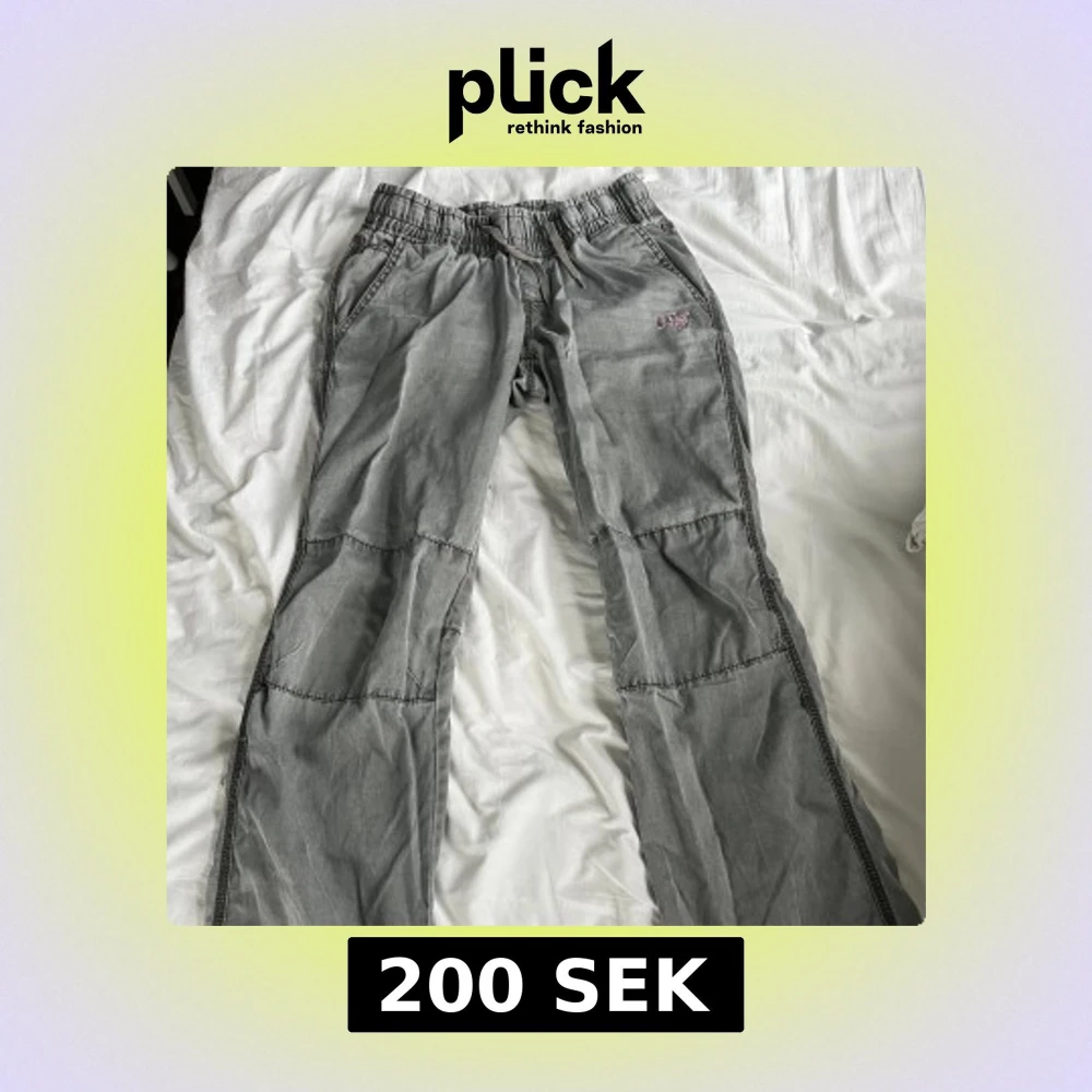 Säljer ett par Bikbok Bull Chic byxor från tidigt 2000-tal. De är fortfarande i fint skick men har några fläckor på baksidan av knäet, syns på sista bilden.