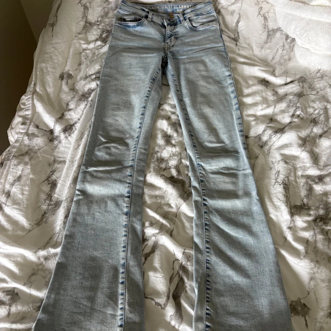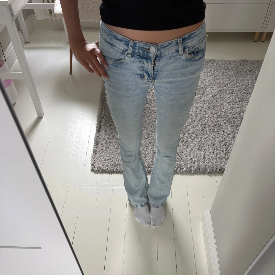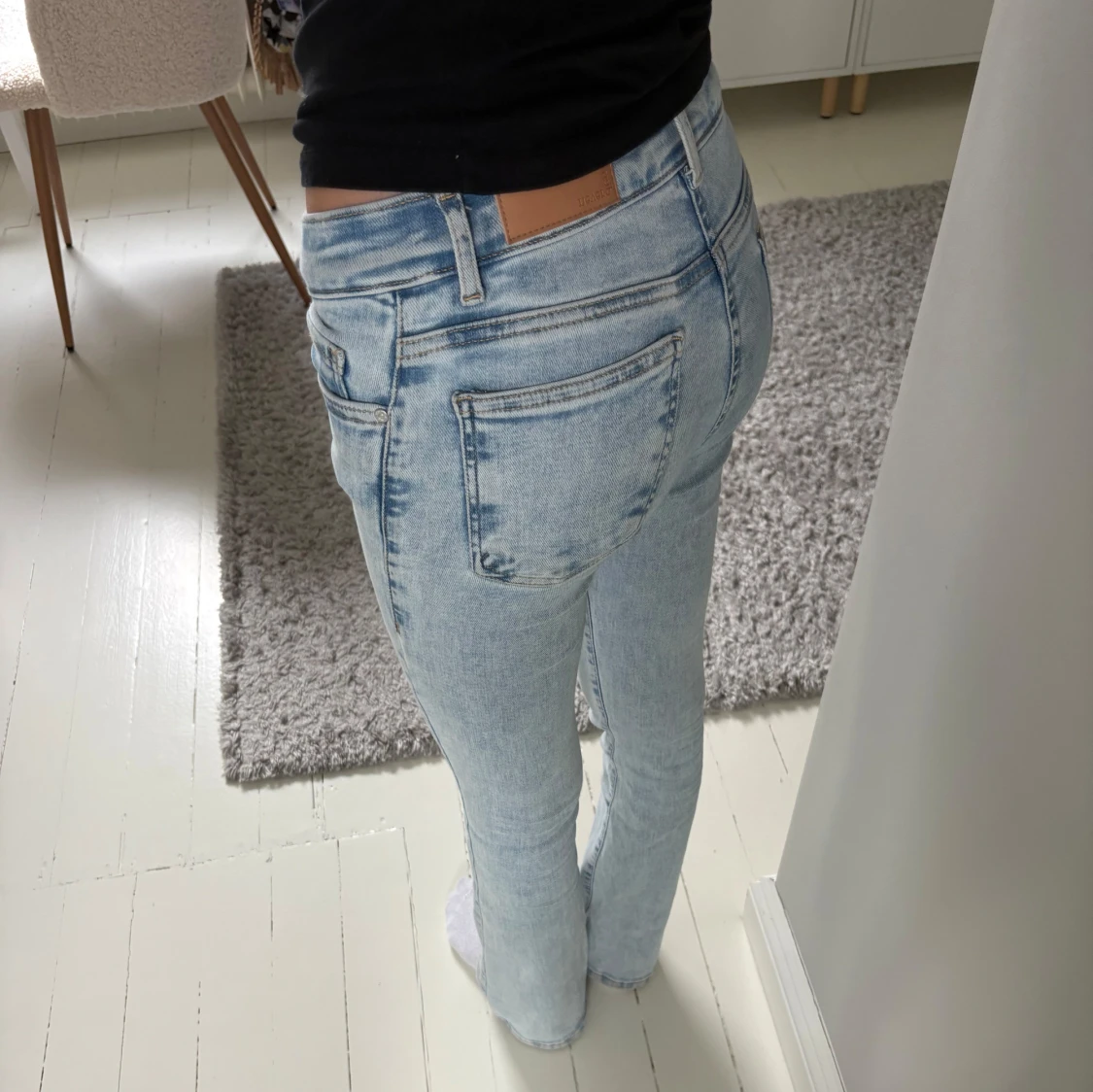 Säljer ett par ljusblå bootcut jeans från BikBok. Jeansen har låg midja och är tillverkade i stretchig denim för en bekväm passform. Jeansen är i storlek xs/31. Jag är 163 cm🩵