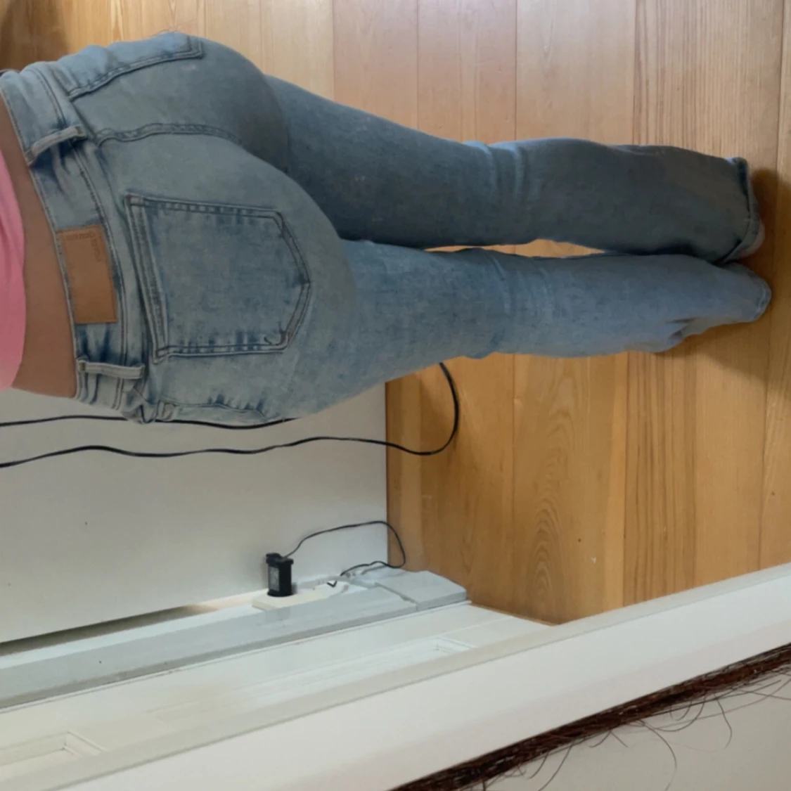 Säljer ett par ljusblå jeans med bootcut passform och låg midja. Jeansen har klassiska fem fickor och snygg tvättad look. Perfekta för dig som gillar en avslappnad men ändå trendig stil. L31. Midjemått:30cm Innerbenslängd:73cm Hela jeansen:98 cm