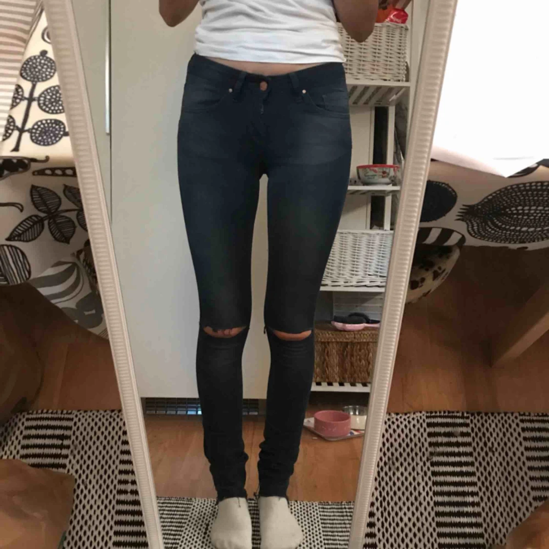 Jeans med hål vid knäna. Knappt använda!