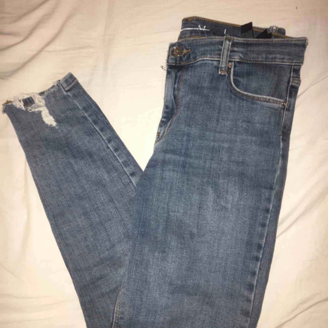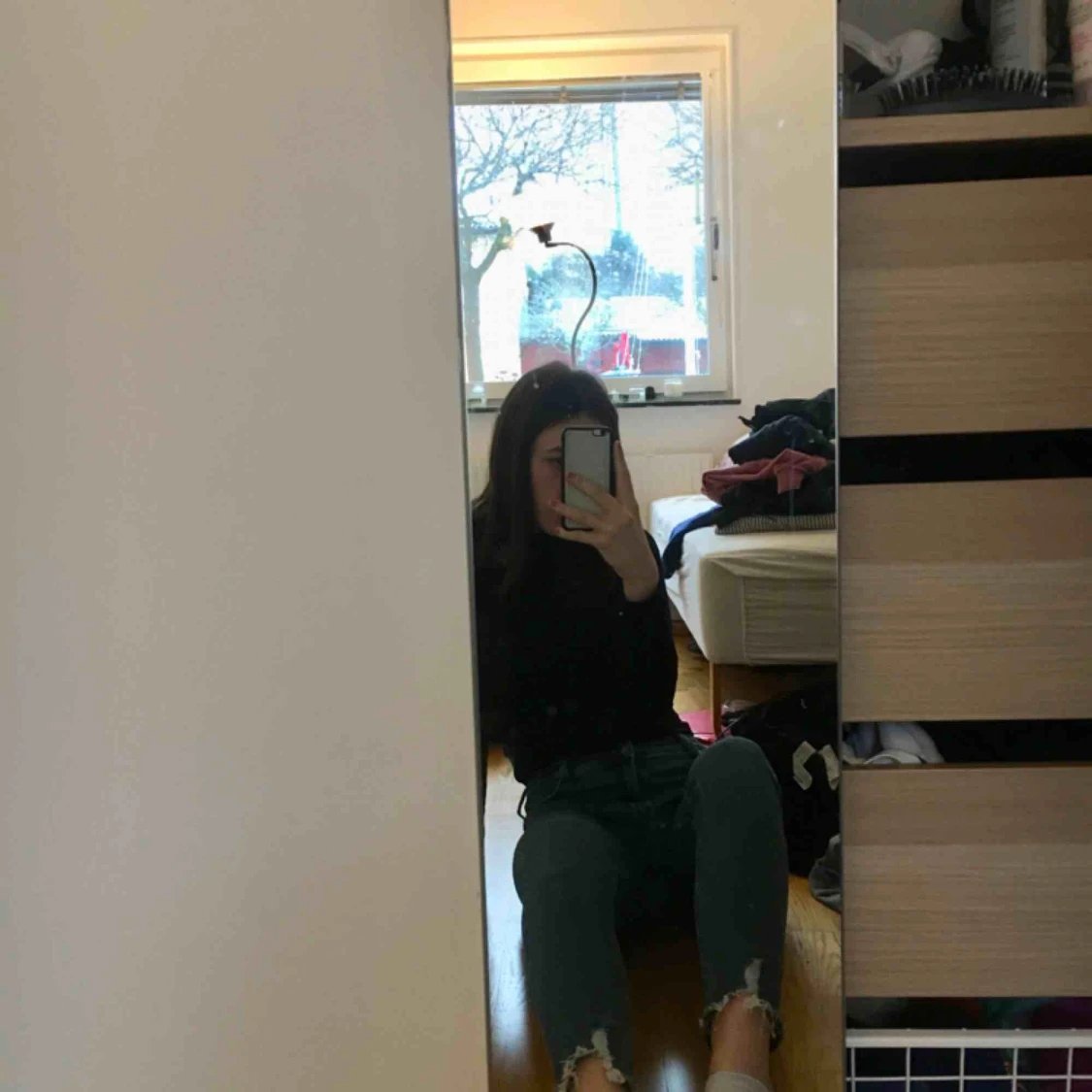 Skitsnygga skinny fit jeans från Bikbok med slitningar vid ankeln. Storlek L men passar snarare M. Säljes pga att de ej passar mig längre. Frakt tillkommer.